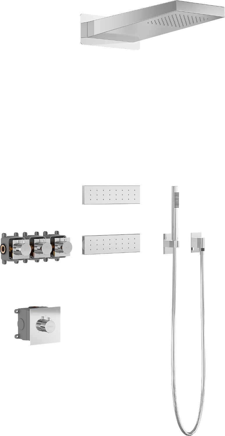 Tok, ki prihaja iz deževne glave, posnema naravni dež. Poskrbi, da kapljice enakomerno padajo na celotno telo, sperejo uporabljene kozmetične izdelke ter blažijo stres in mišično napetost. Vsakodnevna sprostitev v skladu z naravo.