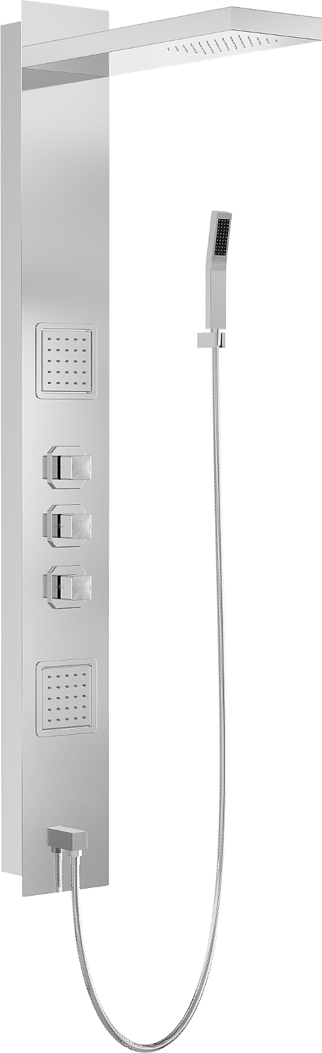 Standarden tok vode, ki posnema naravni dež. Kapljice enakomerno tečejo po telesu, ovijajoč ga s prijetnim občutkom vlaženja in omogočajo, da se potopite v sproščujočo in pomirjujočo izkušnjo, ki bo božala vaše čute med vsakodnevnim tuširanjem.