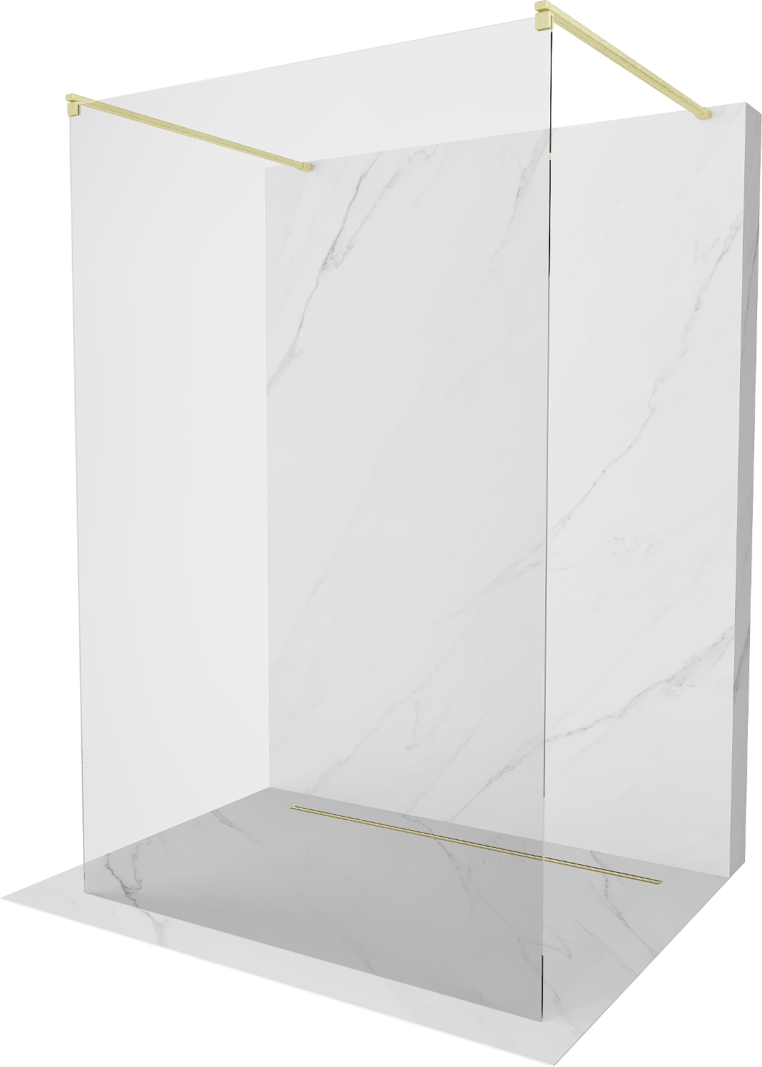 Mexen Kioto prostoječa tuš stena 150 x 200 cm, transparentna 8 mm, zlata brušena - 800-150-002-55-00