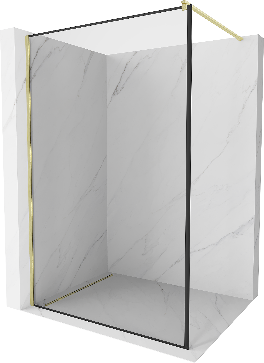 Mexen Kioto Walk-in tuš stena 130 x 200 cm, črni okvir 8 mm, zlato brušena - 800-130-101-55-70