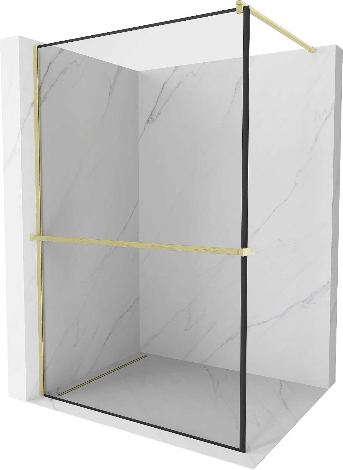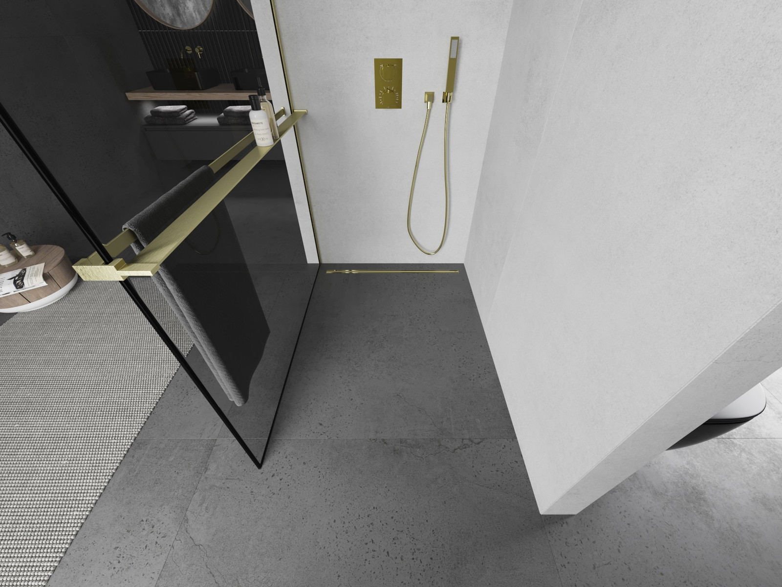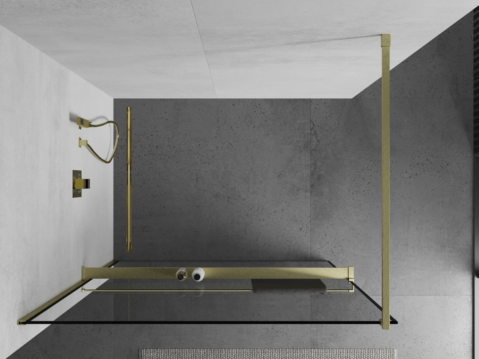Mexen Kioto+ tuš stena s polico Walk-in 120 x 200 cm, črn okvir, zlata brušena - 800-120-121-55-70