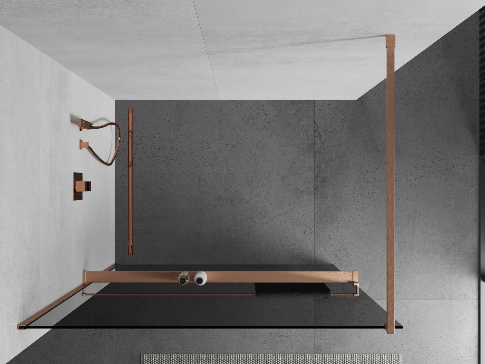 Mexen Kioto+ tuš stena s polico Walk-in 140 x 200 cm, grafit, brušena medenina - 800-140-121-65-40
