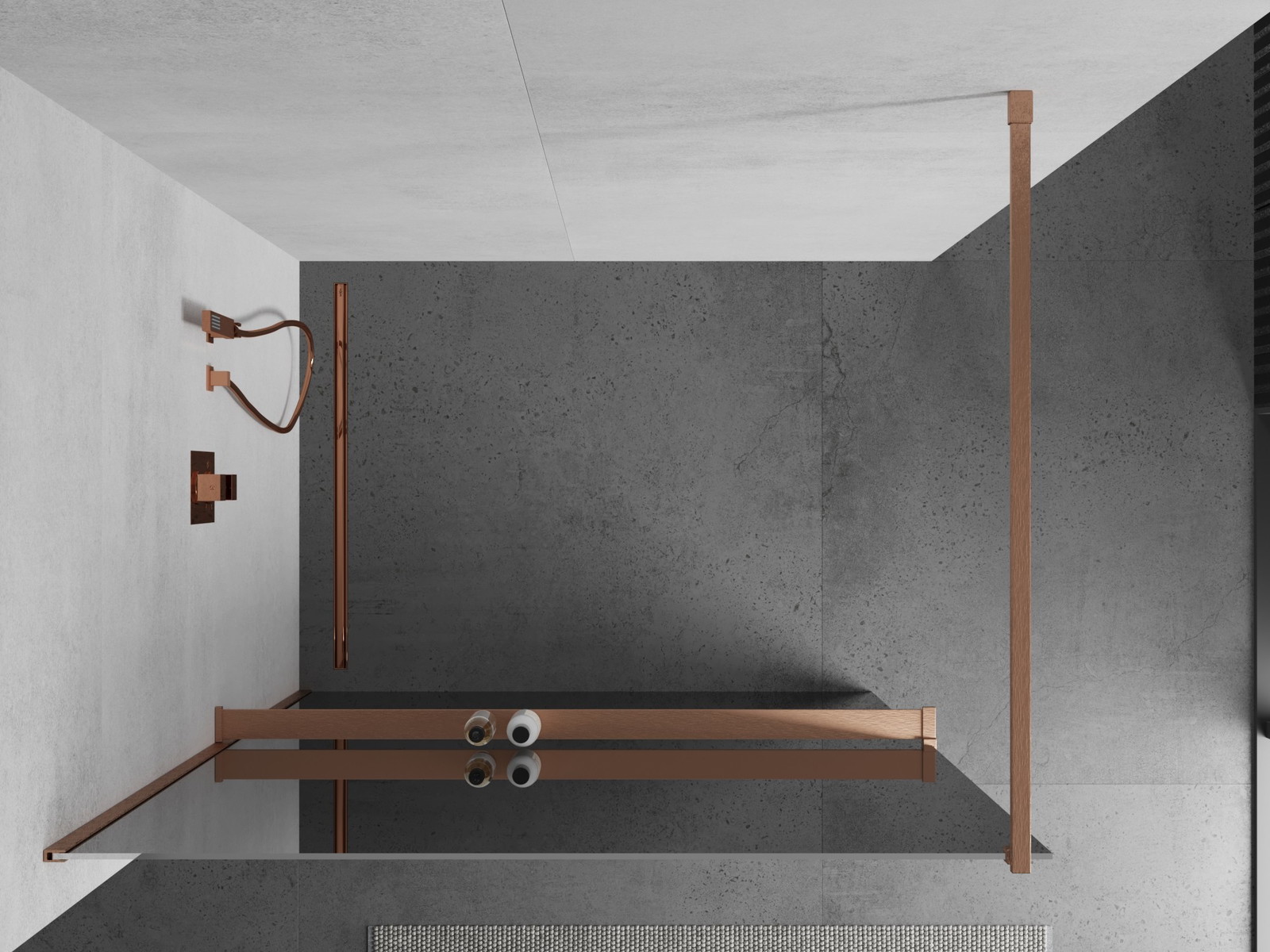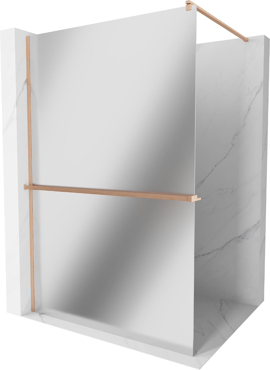 Mexen Kioto+ tuš stena z polico Walk-in 90 x 200 cm, ogledalo, brušena bakra - 800-090-121-65-50