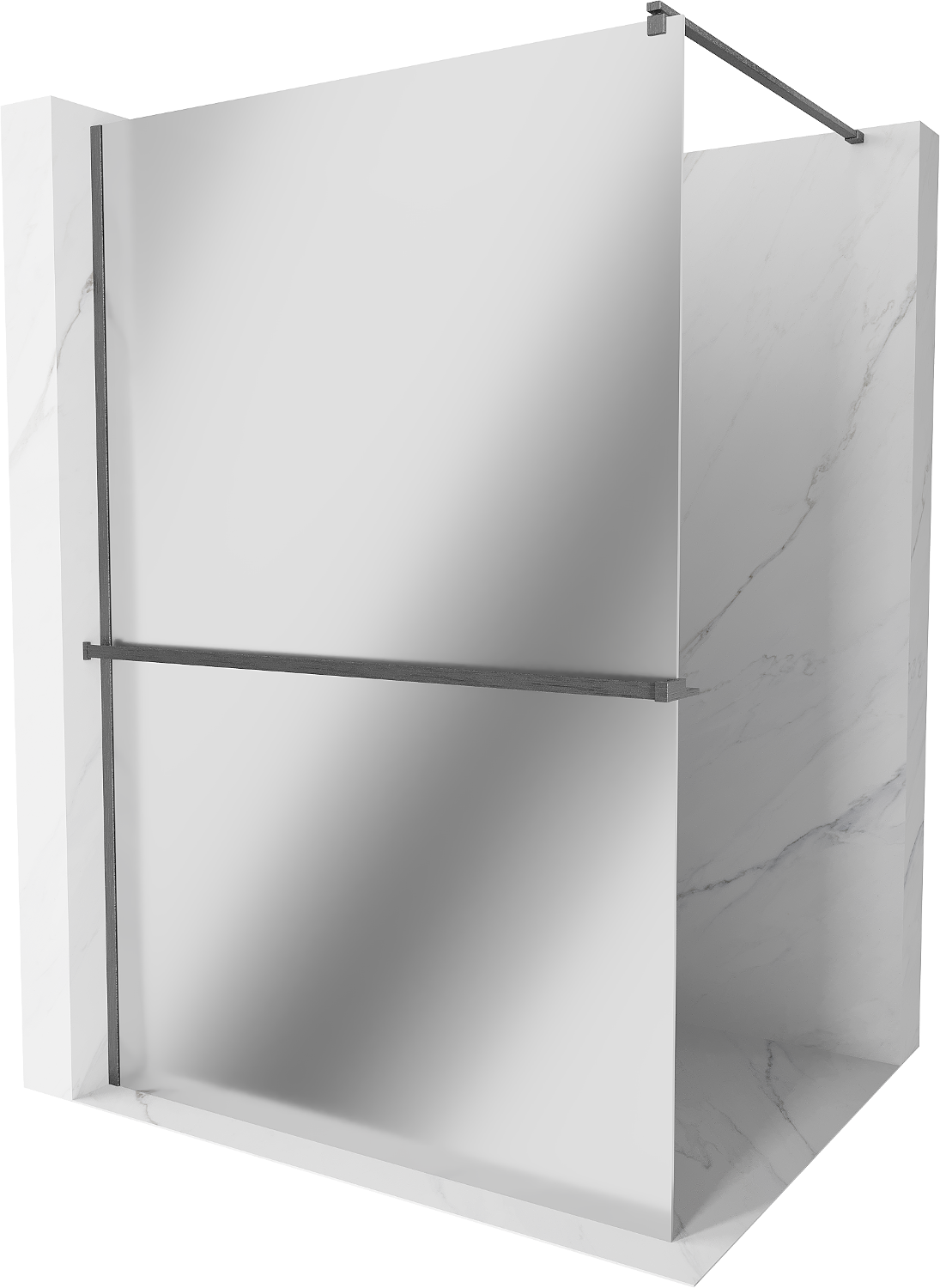 Mexen Kioto+ tuš kabina z polico Walk-in 130 x 200 cm, ogledalo, ščetkano, pištolsko siva - 800-130-121-66-50