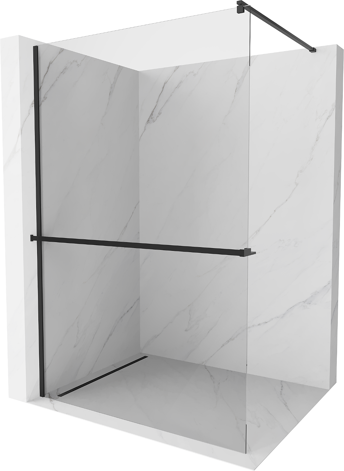 Mexen Kioto+ tuš stena s polico Walk-in 105 x 200 cm, prozorna, črna - 800-105-121-70-00
