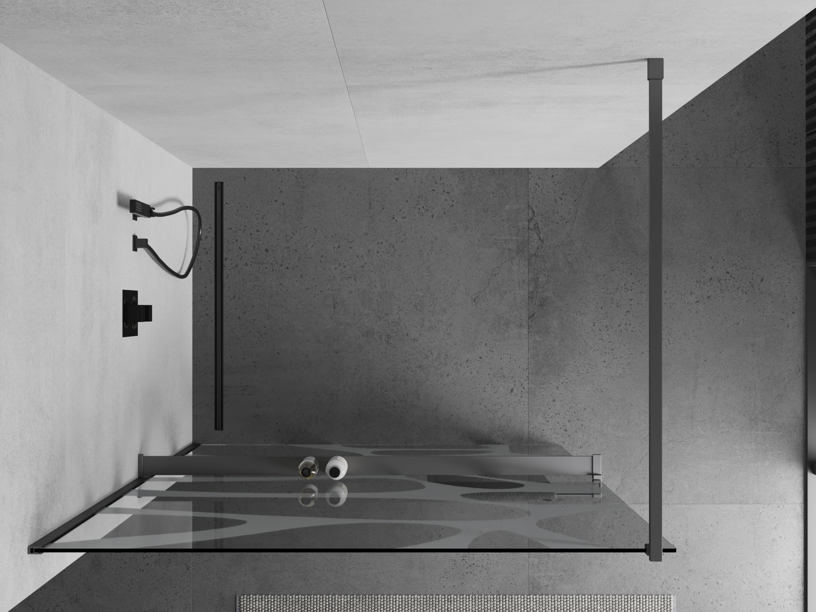 Mexen Kioto+ tuš stena s polico Walk-in 140 x 200 cm, bela vala, gun metal - 800-140-121-95-97