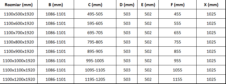Velikost: 110x110 cm (vrata 110 cm, stena 110 cm)