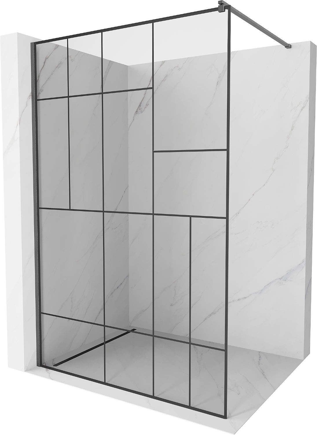 Mexen Kioto pršna stena Walk-in 130 x 200 cm, črni vzorec 8 mm, brušena pištolsko siva - 800-130-101-66-78