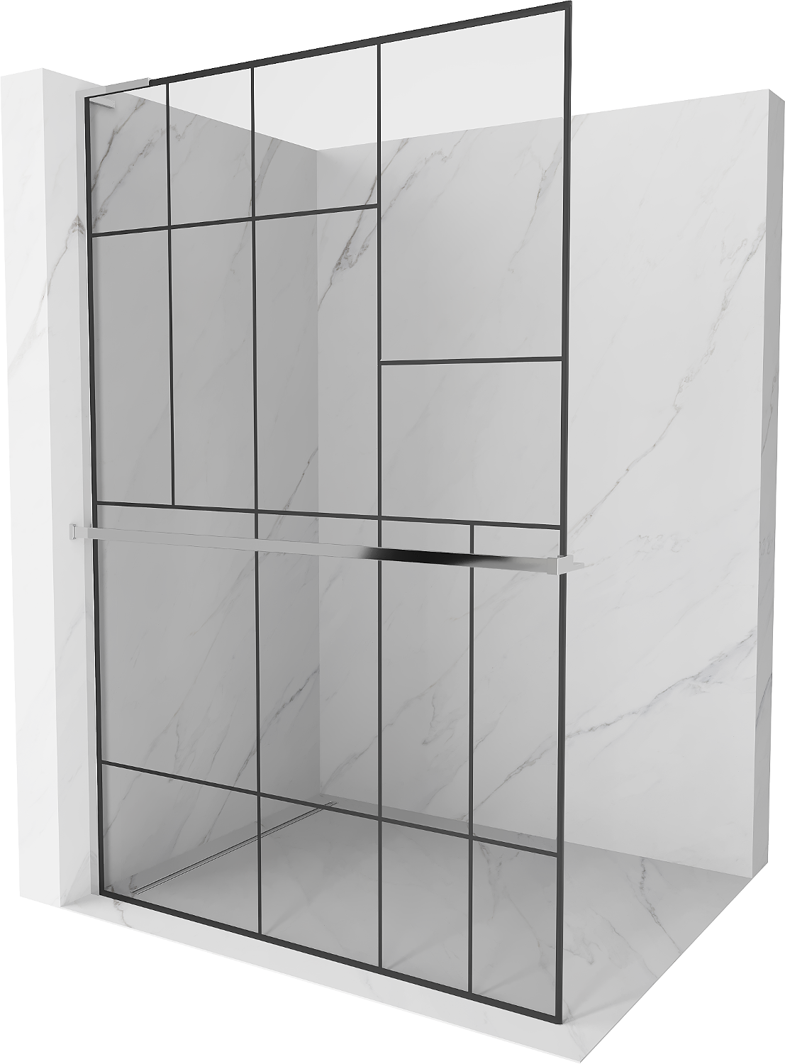 Mexen Kioto+ L tuš stena s polico Walk-in 100 x 200 cm, črni vzorec, krom - 800-100-123-01-78