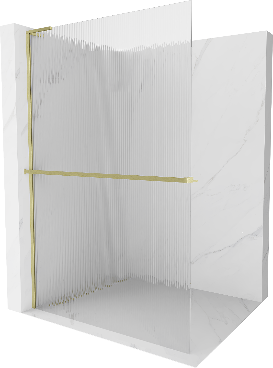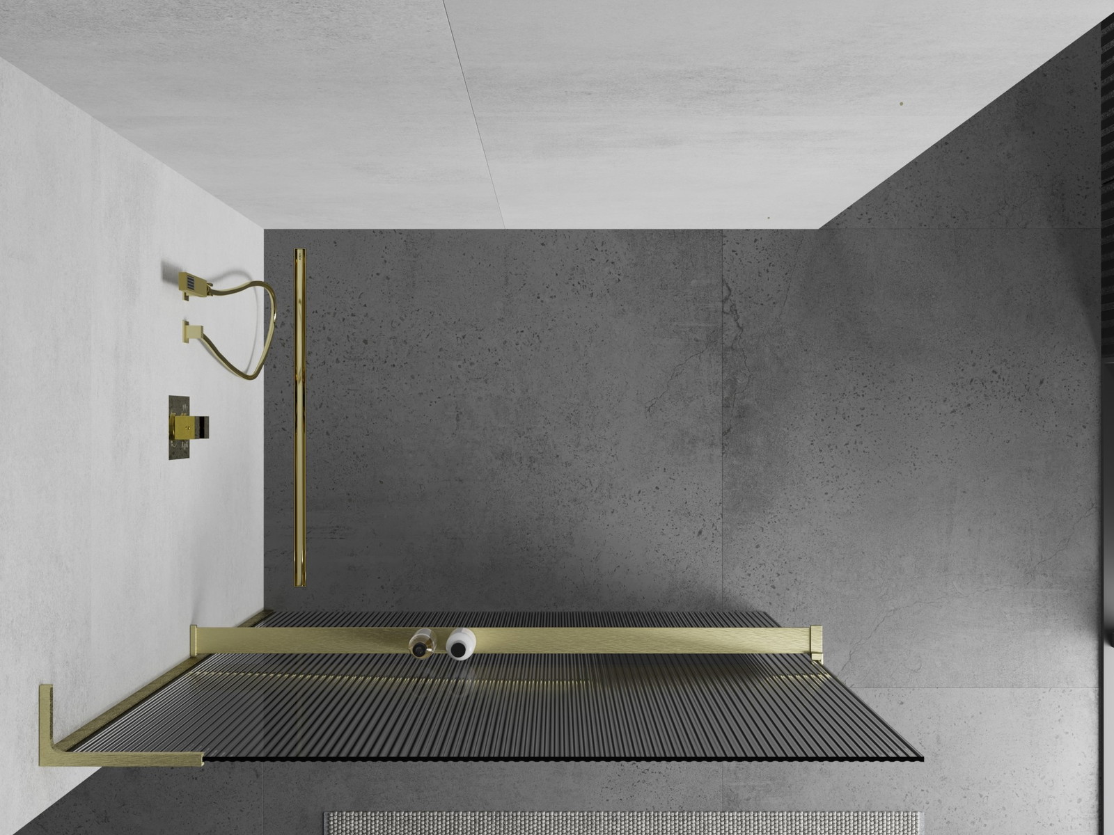 Mexen Kioto+ L tuš pregrada s polico Walk-in 110 x 200 cm, črte, zlata brušena - 800-110-123-55-09