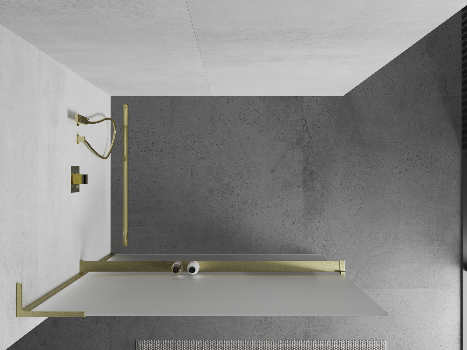 Mexen Kioto+ L Tuš stena z polico Walk-in 110 x 200 cm, mraz, zlata brušena - 800-110-123-55-30