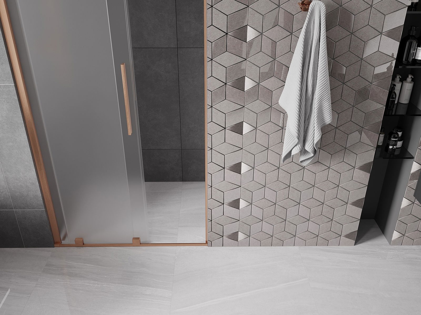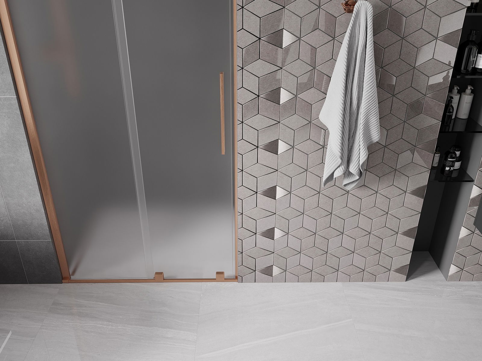 Priročen in udoben ročaj je izdelan iz nerjavečega jekla. Modna oblika v kombinaciji s končno obdelavo, ki ustreza barvi profilov, daje celoti moderen in stiliziran videz ter poudarja estetiko vsake kopalnice.