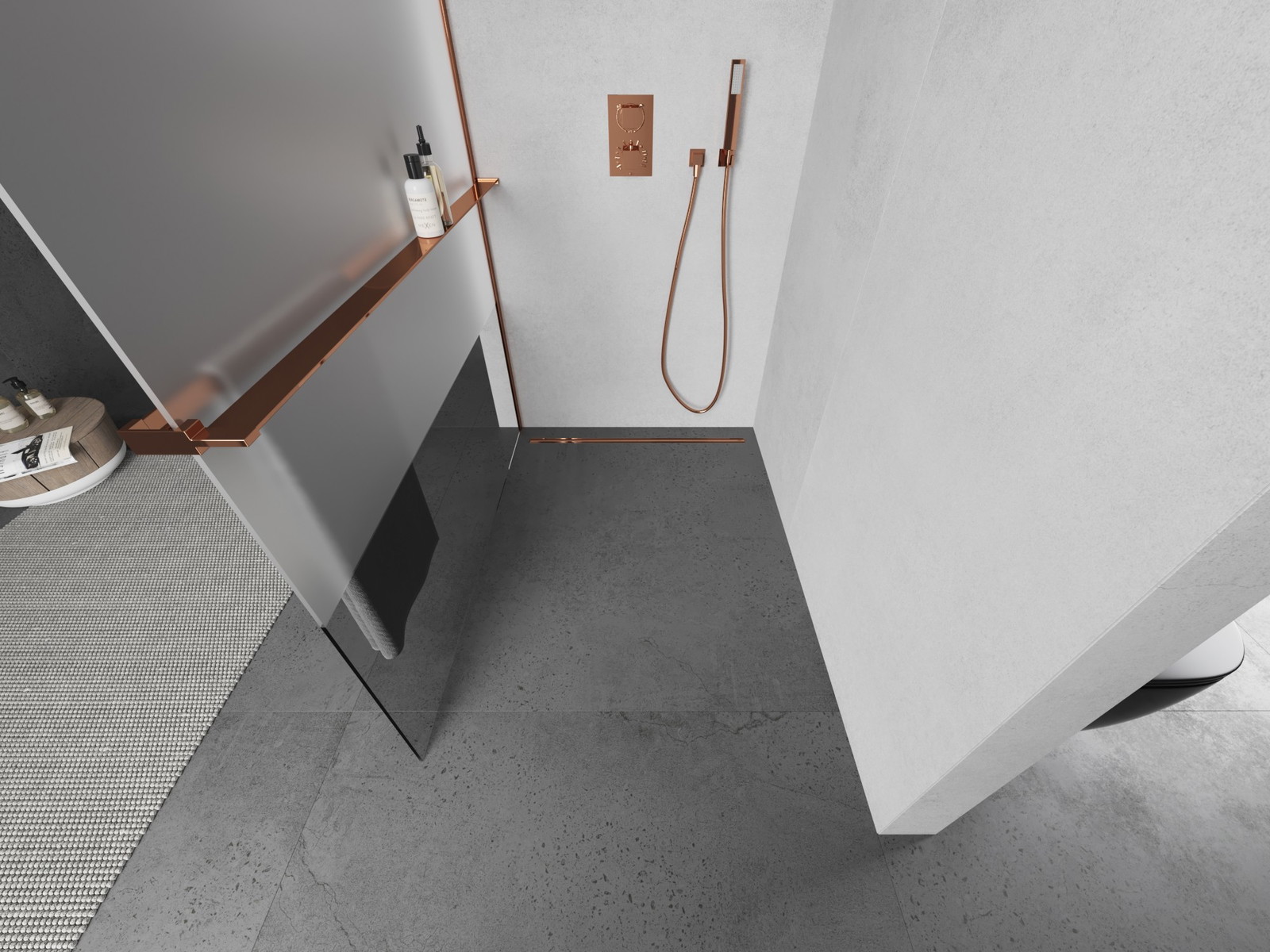 Mexen Kioto+ L tuš stena z polico Walk-in 100 x 200 cm, prozorno/zmrzlina, rožnato zlato - 800-100-123-60-35