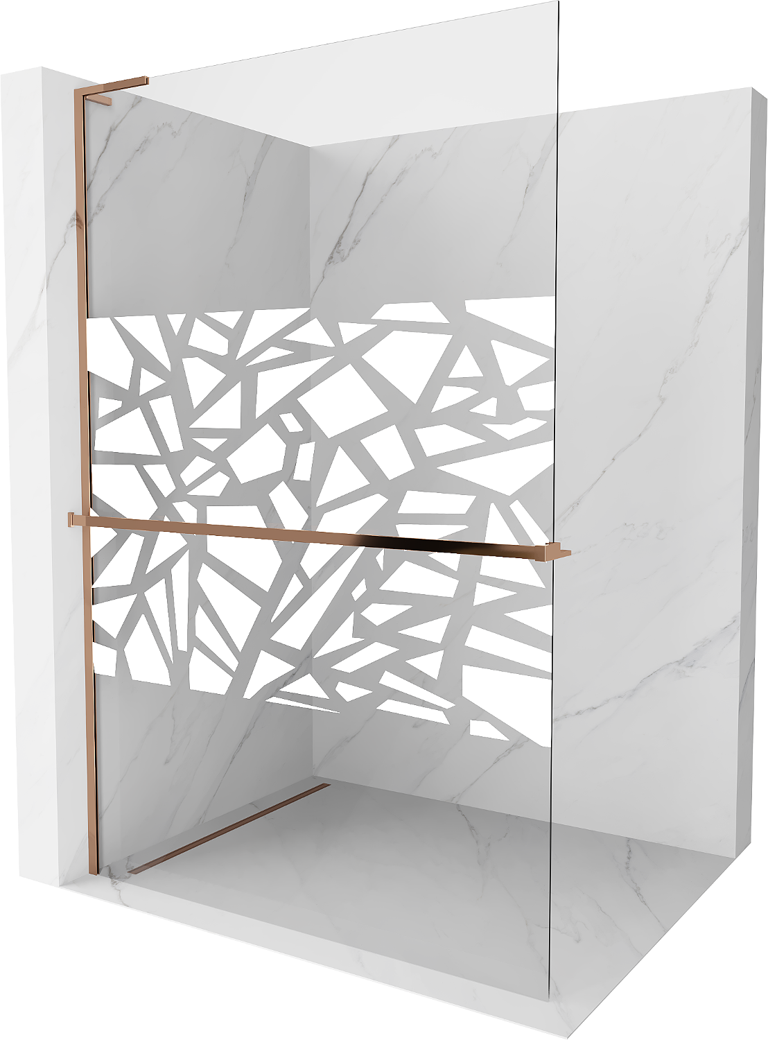 Mexen Kioto+ L tuš stena s polico Walk-in 110 x 200 cm, bel vzorec, rožnato zlato - 800-110-123-60-85