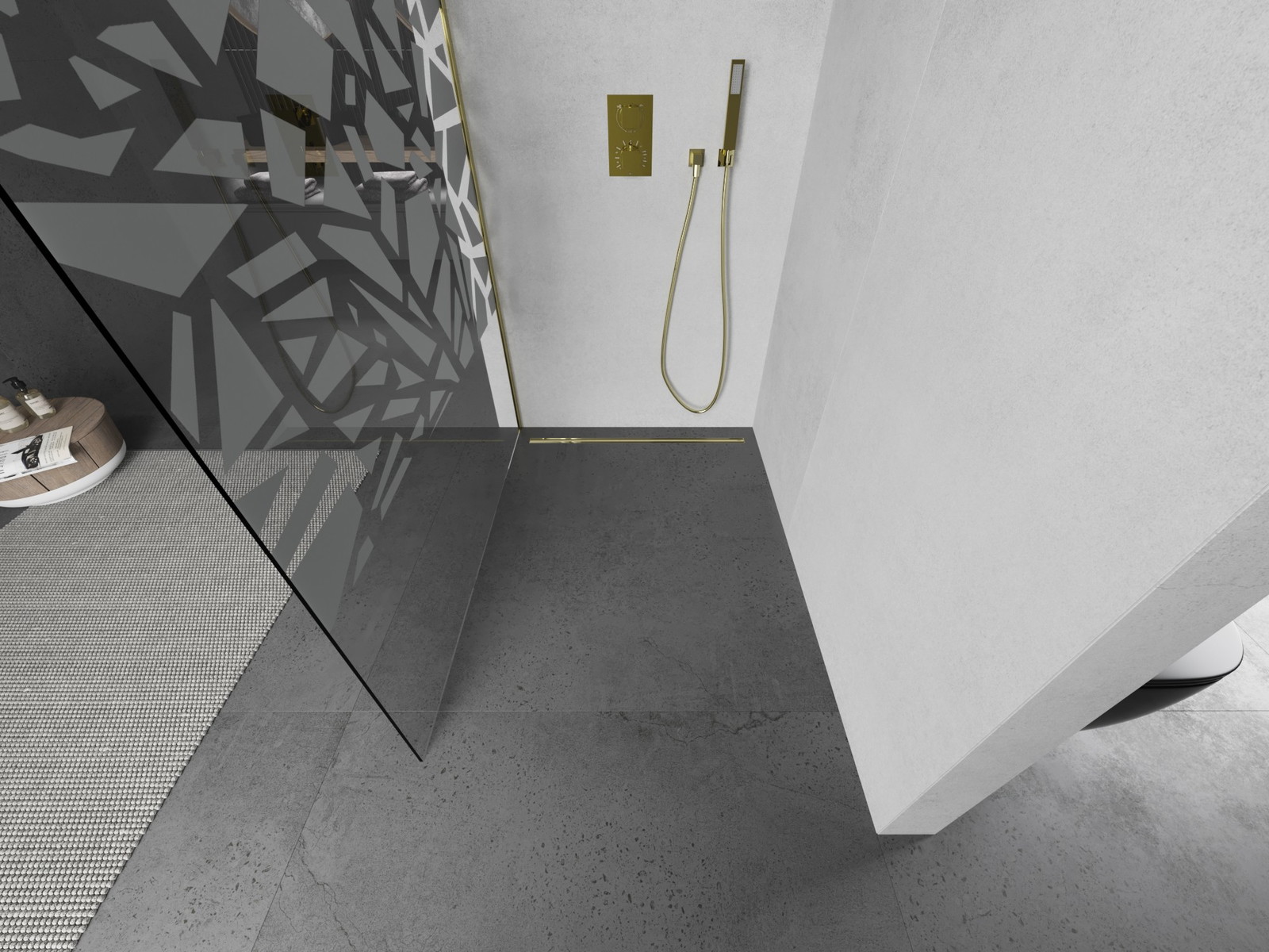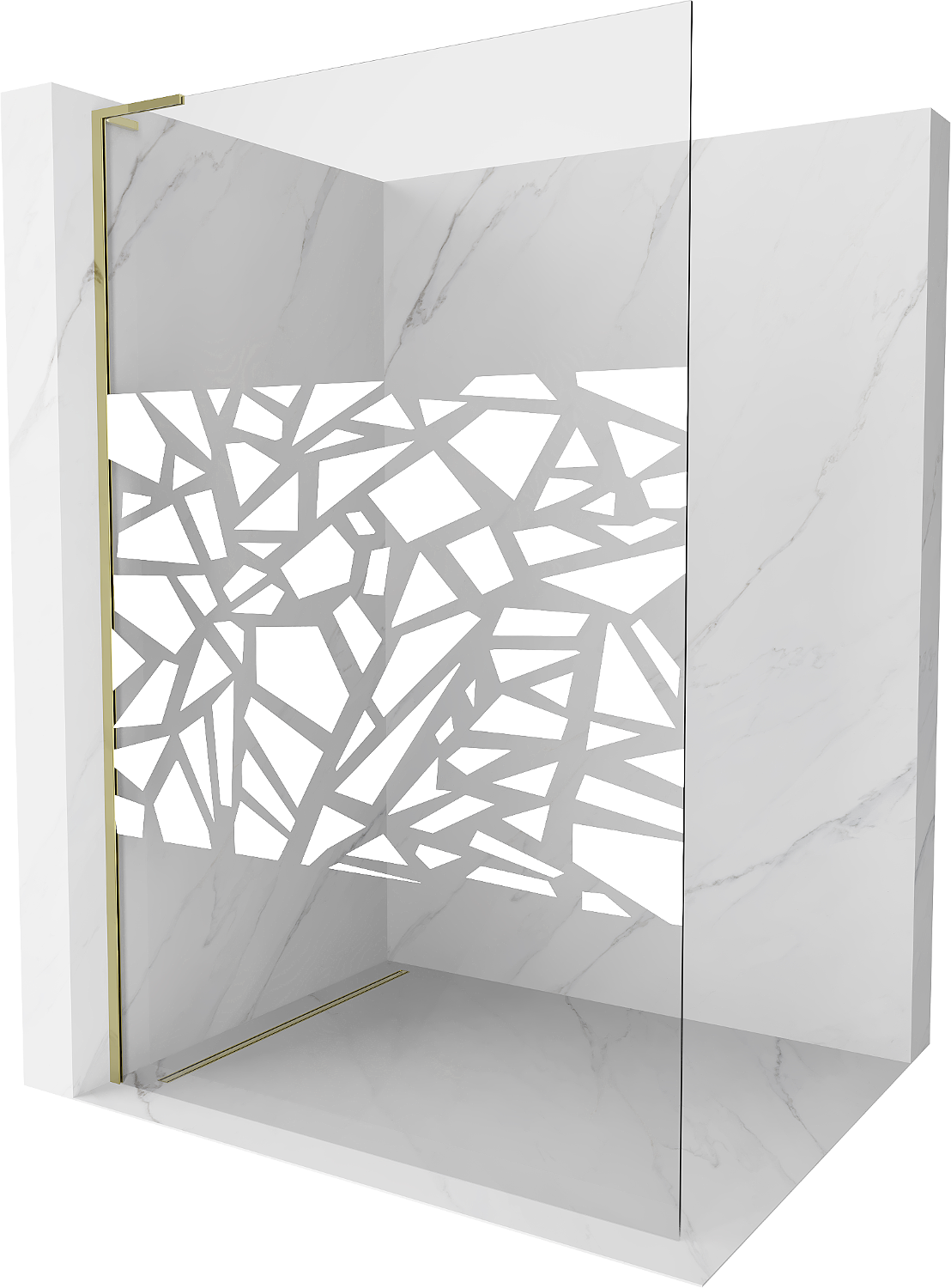 Mexen Kioto L tuš stena Walk-in 110 x 200 cm, beli vzorec, zlata - 800-110-103-50-85