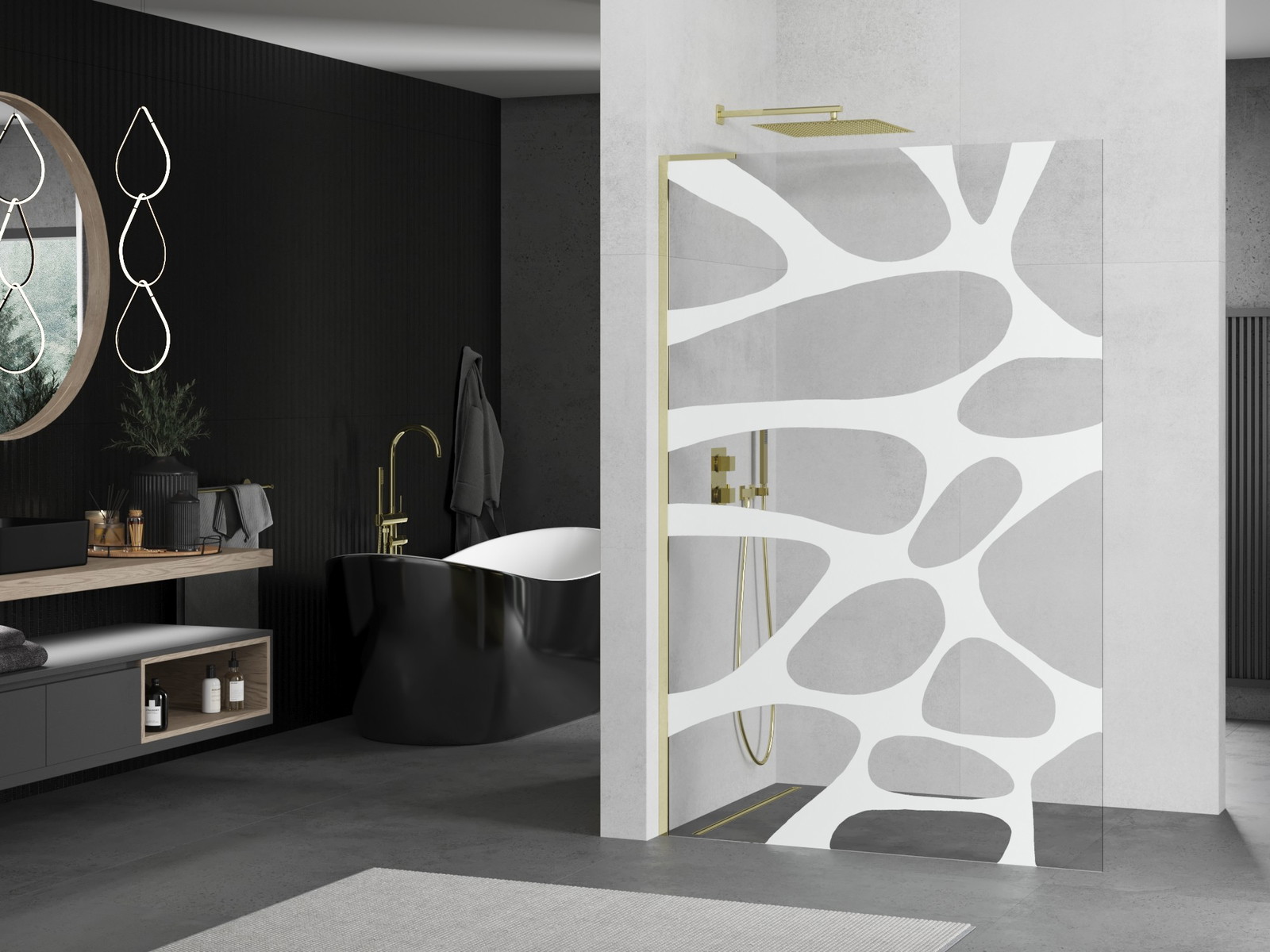 Mexen Kioto L tuš stena Walk-in 120 x 200 cm, bela val, zlata - 800-120-103-50-97