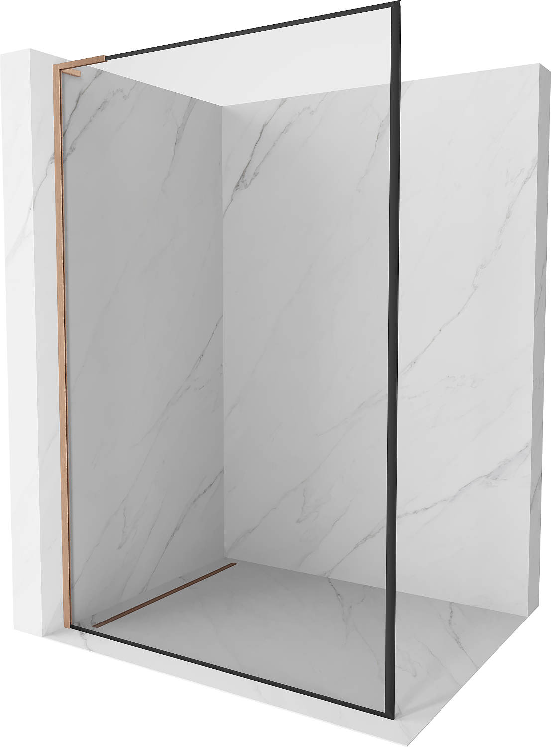 Mexen Kioto L Walk-in tuš stena 50 x 200 cm, črni okvir, brušen baker - 800-050-103-65-70