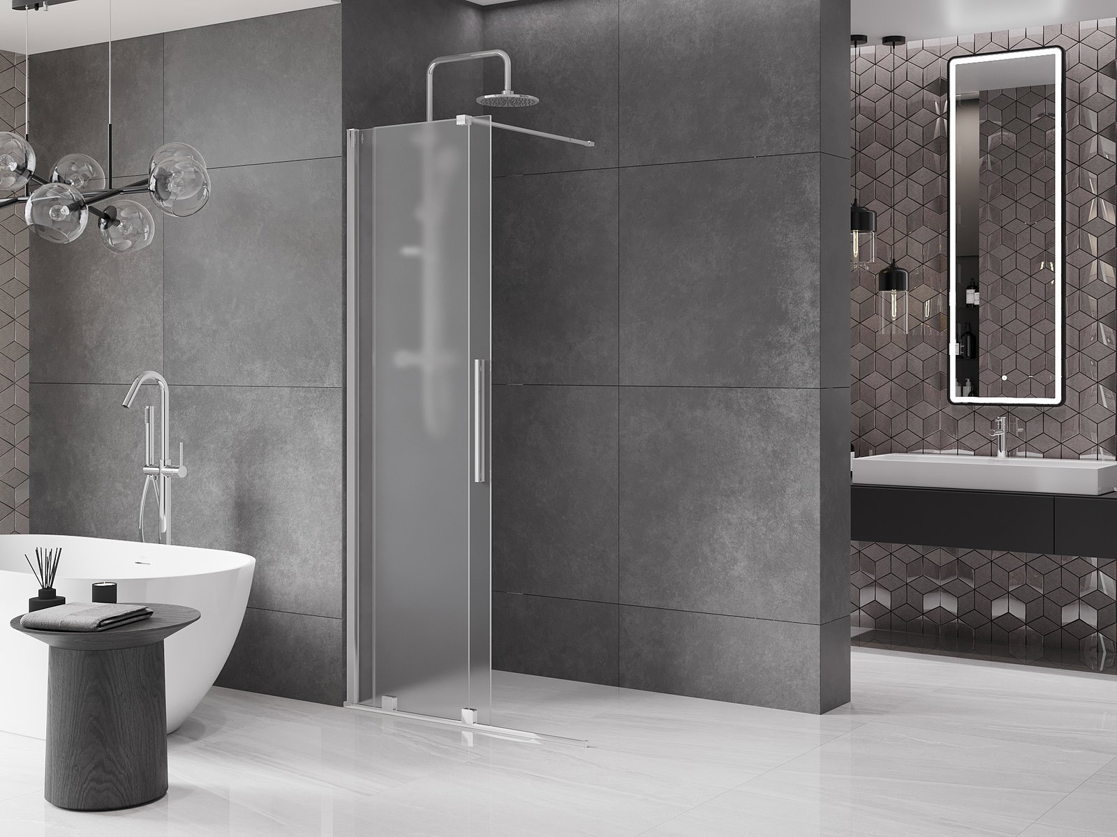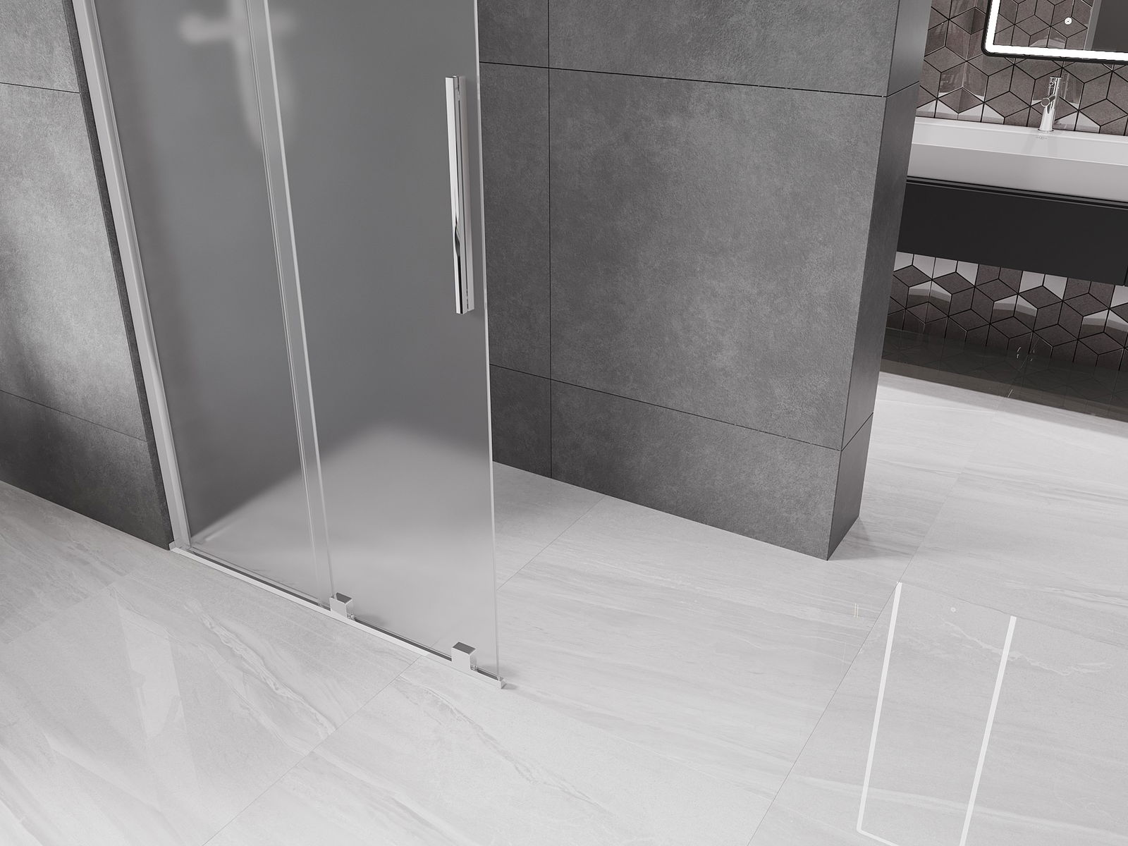 Drsna pršna stena je odlična rešitev za sodobne kopalnice, ki omogoča prihranek prostora, zagotavlja udoben dostop do prhe in hkrati estetski videz.