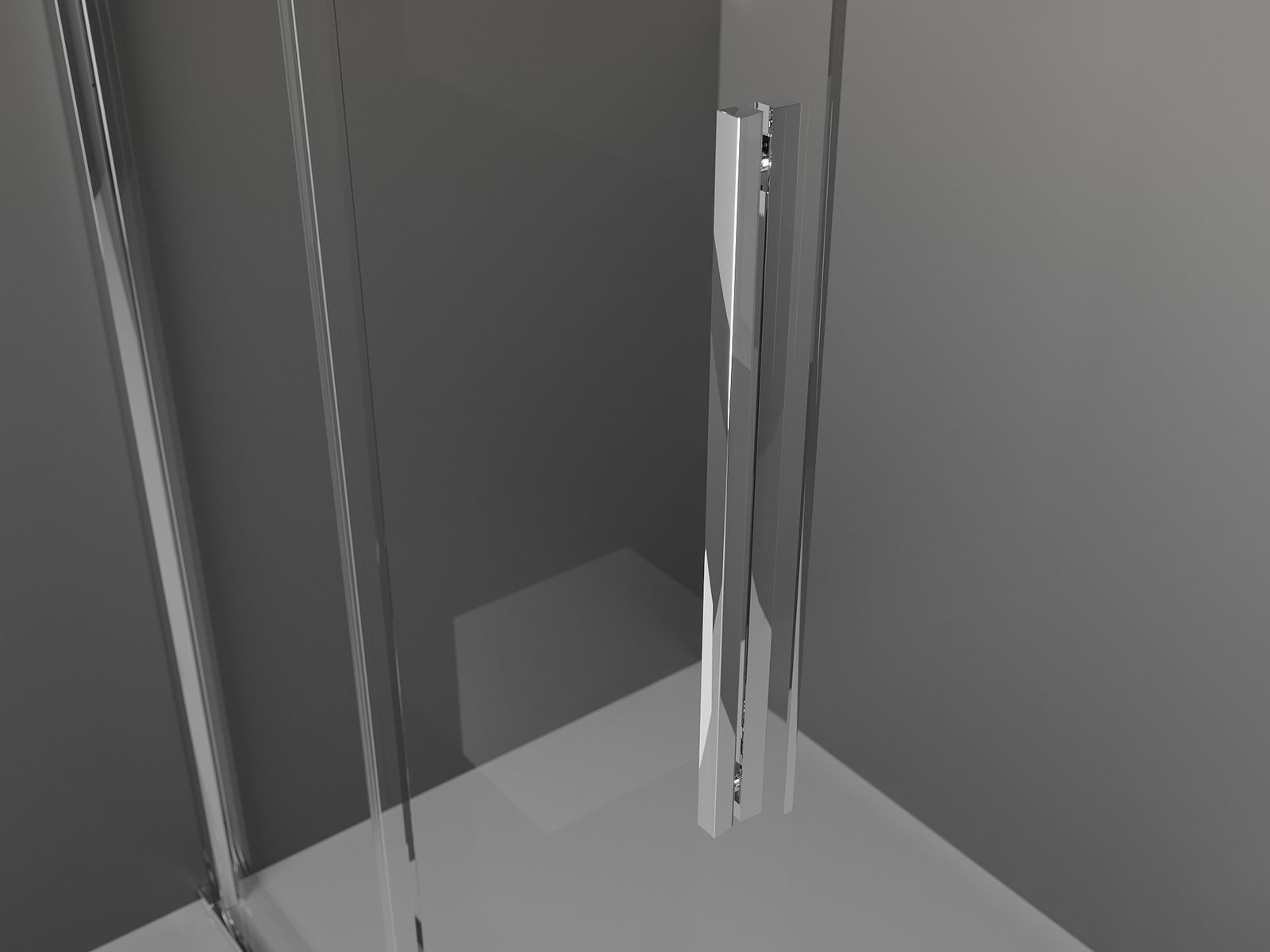 Priročen in udoben ročaj je izdelan iz nerjavečega jekla. Modna oblika v kombinaciji s končno obdelavo, ki ustreza barvi profilov, daje celoti moderen in stiliziran videz ter poudarja estetiko vsake kopalnice.