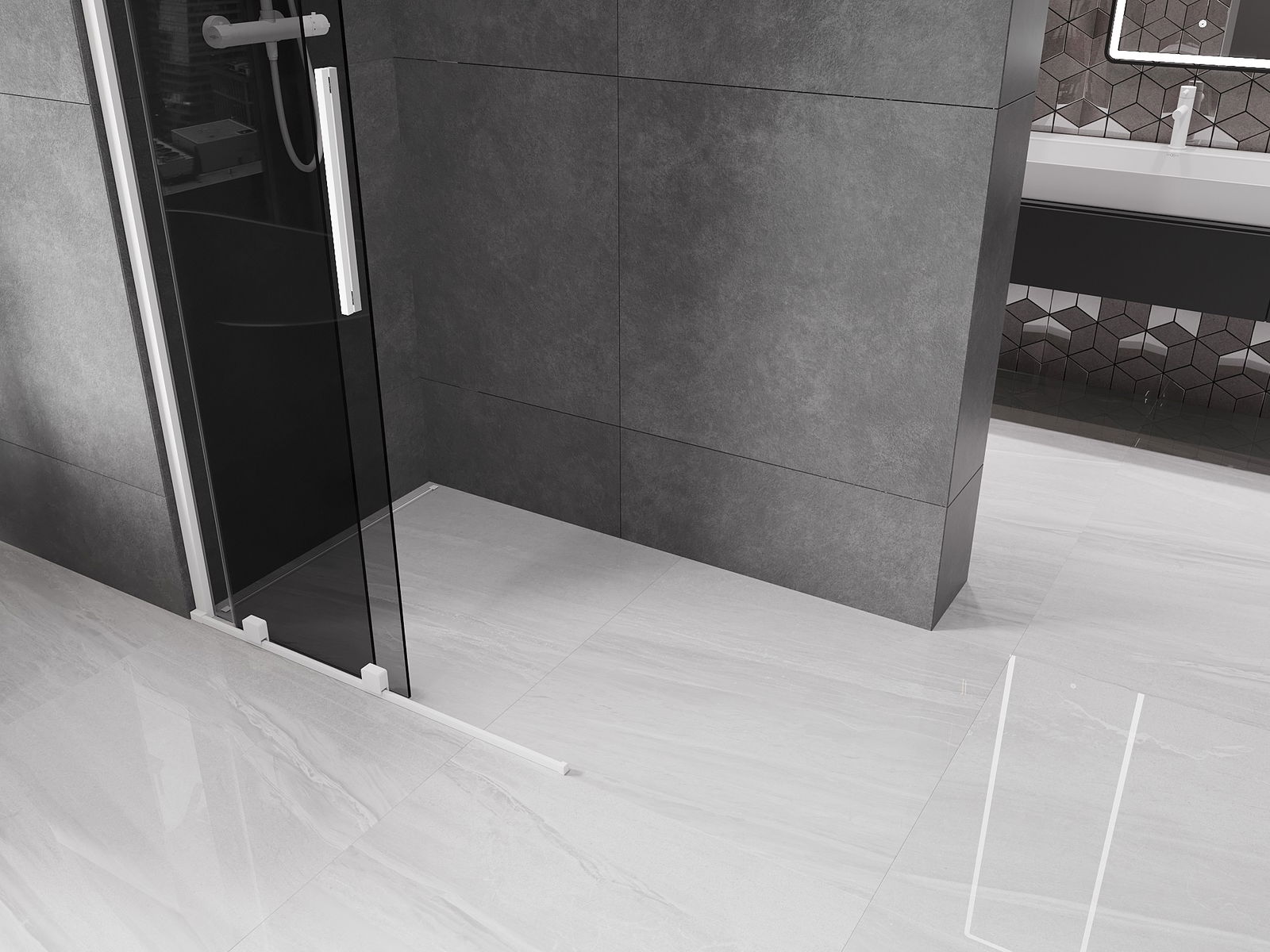 Drsna pršna stena je odlična rešitev za sodobne kopalnice, ki omogoča prihranek prostora, zagotavlja udoben dostop do prhe in hkrati estetski videz.
