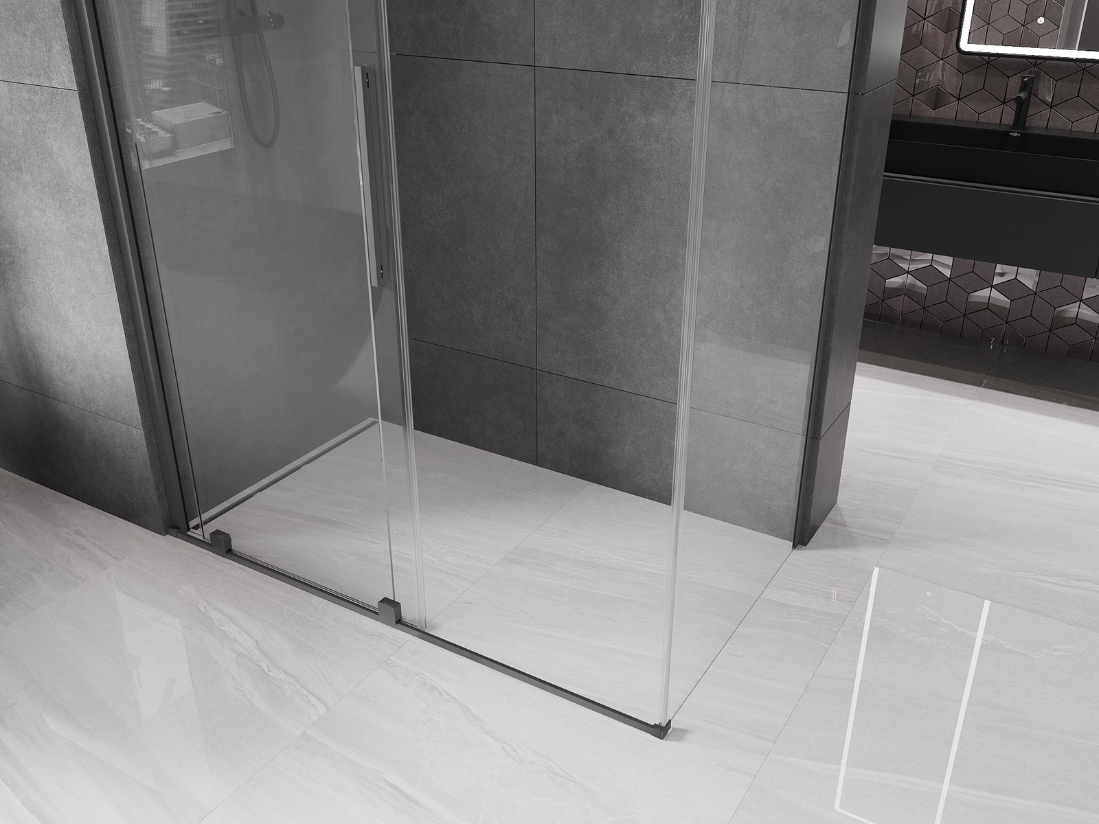 Mexen Velar drsna tuš kabina je odlična izbira za tiste, ki cenijo sodoben slog in funkcionalnost. Njena velikost 150x70 cm z višino 200 cm je univerzalna in ustreza večini kopalnic. Sodobna drsna vrata iz kaljenega stekla debeline 8 mm zagotavljajo estetiko in varnost. Prozorno steklo s premazom, ki olajša čiščenje, in zaključek v tonaciji gun metal dodata eleganco. Aluminijasti profil in jekleni ročaji zagotavljajo trajnost, možnost montaže tako na kad kot na ploščice pa jo naredi izjemno vsestransko. Sodobni, posamezni rolerji ter komplet tesnil poskrbijo za udobje uporabe.
