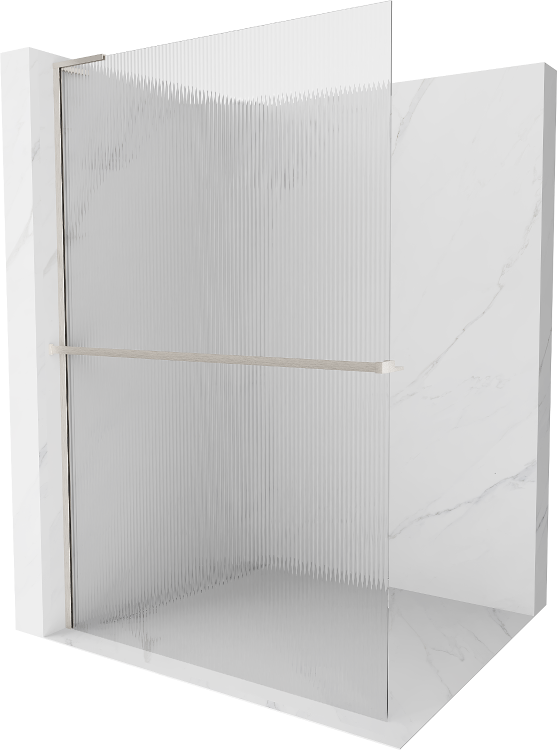 Mexen Kioto+ L tuš stena s polico Walk-in 120 x 200 cm, proge, brušeni nikel - 800-120-123-97-09