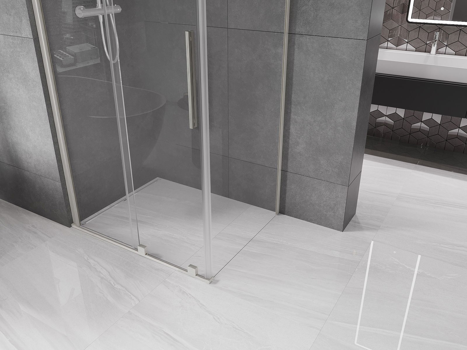 Zahvaljujoč uporabi univerzalnega sistema montaže je mogoče pršne vrata namestiti na desni ali levi strani, odvisno od potreb. Zahvaljujoč temu lahko z lahkoto oblikujete prho, prilagojeno prostoru v kopalnici.