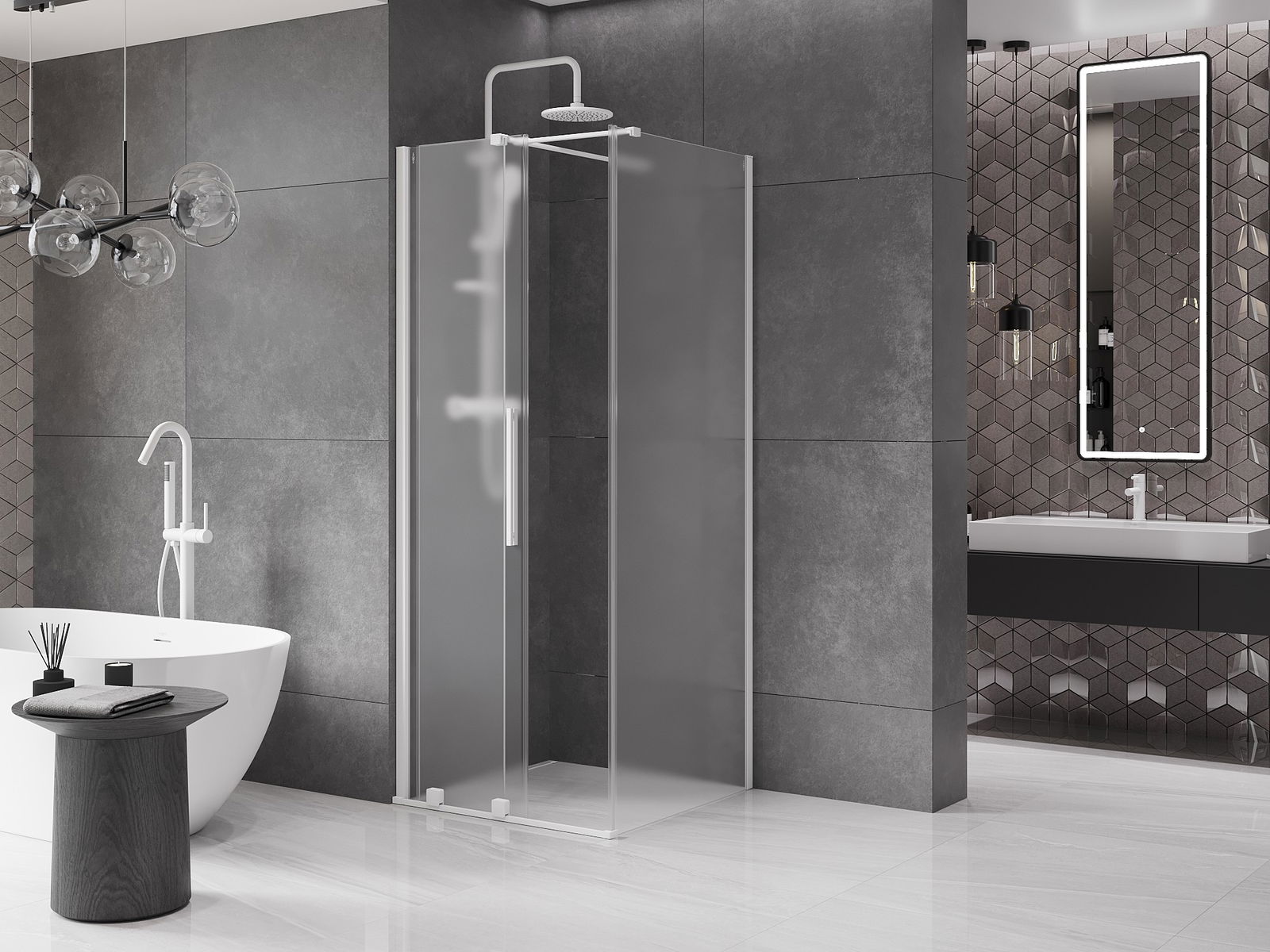 Zahvaljujoč uporabi univerzalnega sistema montaže je mogoče pršne vrata namestiti na desni ali levi strani, odvisno od potreb. Zahvaljujoč temu lahko z lahkoto oblikujete prho, prilagojeno prostoru v kopalnici.