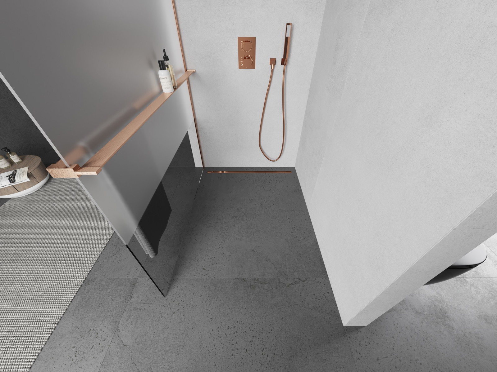 Mexen Kioto+ L tuš zaslon z polico Walk-in 80 x 200 cm, prozoren/mat, brušeni baker - 800-080-123-65-35