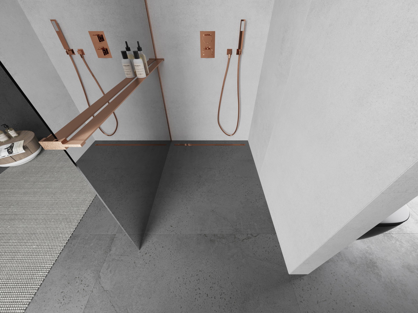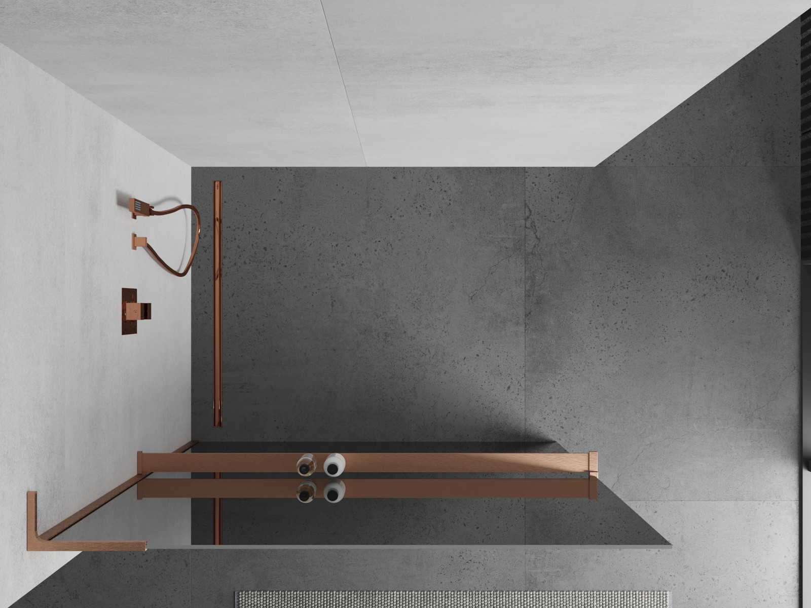 Mexen Kioto+ L tuš pregrada s polico Walk-in 70 x 200 cm, ogledalo, brušen baker - 800-070-123-65-50