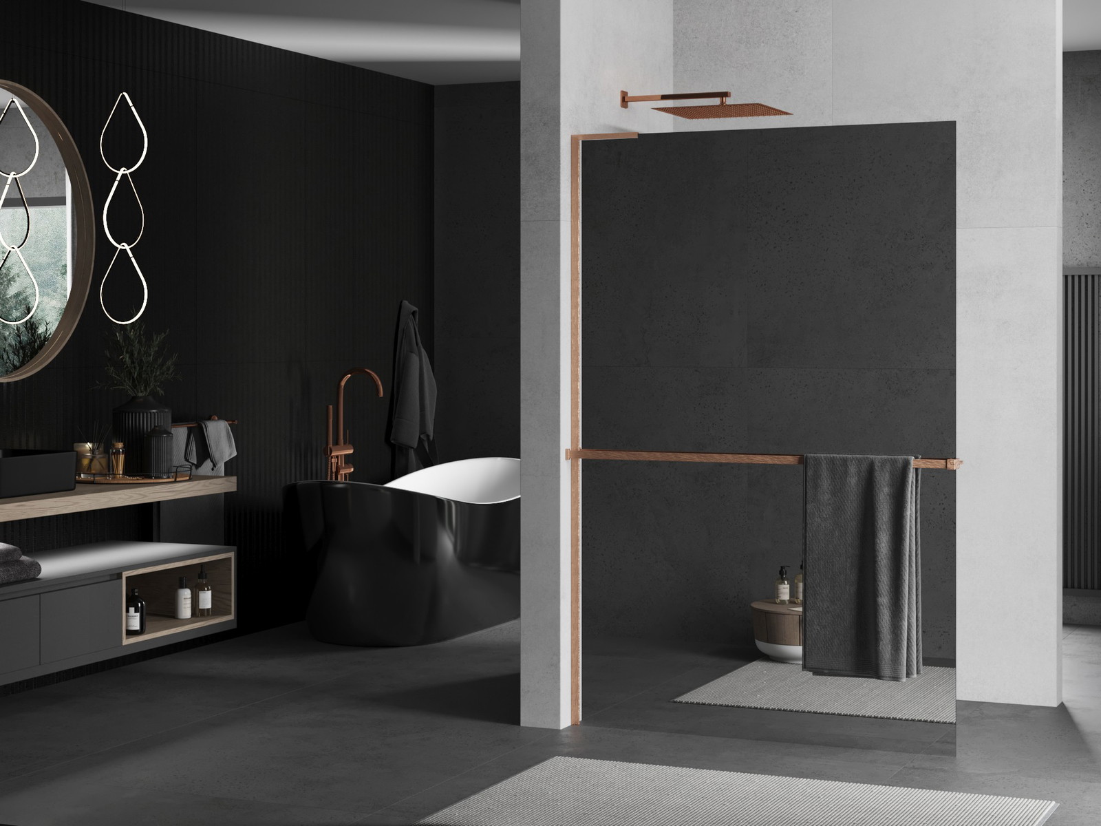Mexen Kioto+ je elegantna tuš pregrada Walk-in, ki popolno združuje funkcionalnost in slog. Ponuja širino 70 cm in višino 200 cm, kar omogoča univerzalno montažo tako z desne kot z leve strani, prilagodljivo za različne kopalnice. Ogledalo kot barva stekla vizualno poveča prostor, brusena bakrena dodelava pa dodaja sodoben značaj. Kaljeno steklo debeline 8 mm zagotavlja trajnost, aluminijast profil in L-stabilizator iz nerjavnega jekla pa zanesljivost konstrukcije. Dodatna aluminijasta polica z največjo dolžino 140 cm in dimenzijami 12,9 cm širine ter 3,2 cm višine je praktičen dodatek. Možnost enostavnega obrezovanja police in poseben premaz, ki olajša čiščenje, minimizira težave z montažo in vzdrževanjem. Izdelek je prilagojen za namestitev na kad ali ploščice ter omogoča izravnavo neravnin stene, kar ga naredi za vsestransko izbiro za sodobne kopalnice.