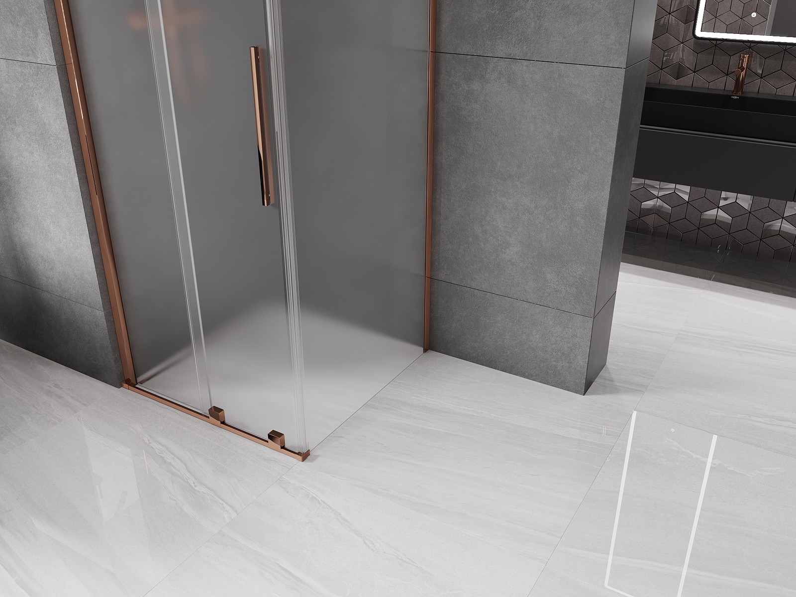 Mexen Velar drsna tuš kabina 120 x 120 cm, mat steklo, rožnato zlato - 871-120-120-31-60