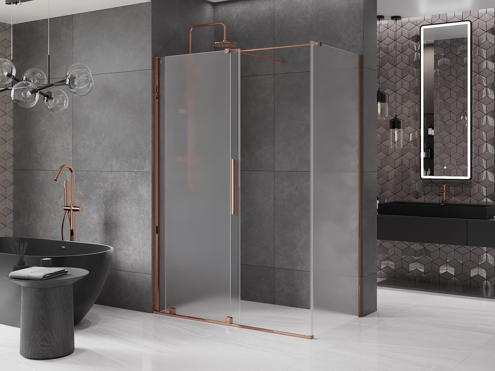 Zahvaljujoč uporabi univerzalnega sistema montaže je mogoče pršne vrata namestiti na desni ali levi strani, odvisno od potreb. Zahvaljujoč temu lahko z lahkoto oblikujete prho, prilagojeno prostoru v kopalnici.