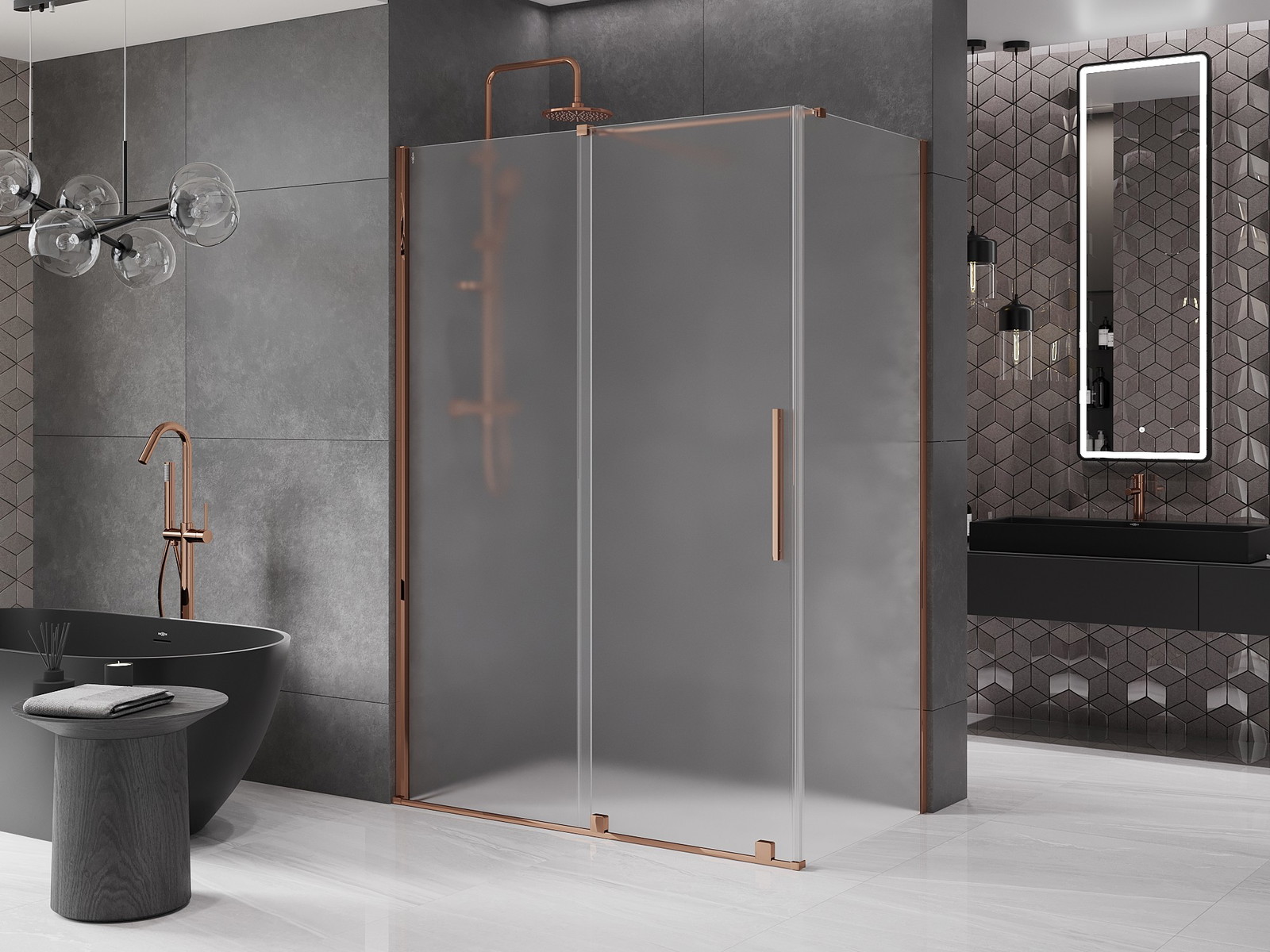 Mexen Velar drsna pršna kabina 150 x 75 cm, mraz, rožnato zlato - 871-150-075-31-60