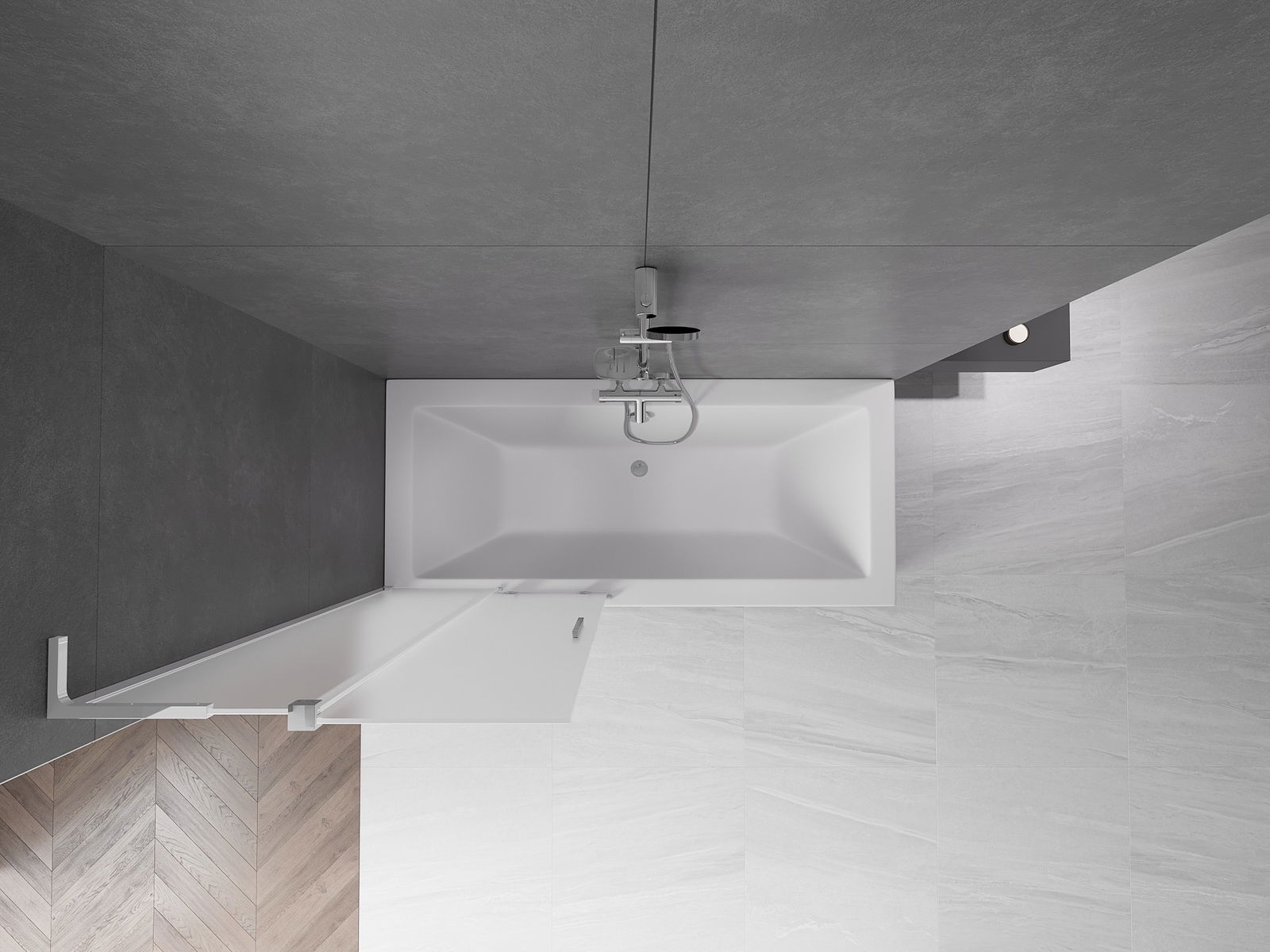 Učinkovita zaščita pred razlivanjem vode med kopanjem. Paravan ima tesnila, ki se popolnoma prilegajo stekleni plošči in robu kadi. Funkcionalna rešitev, ki zagotavlja varnost in enostavno vzdrževanje čistoče.