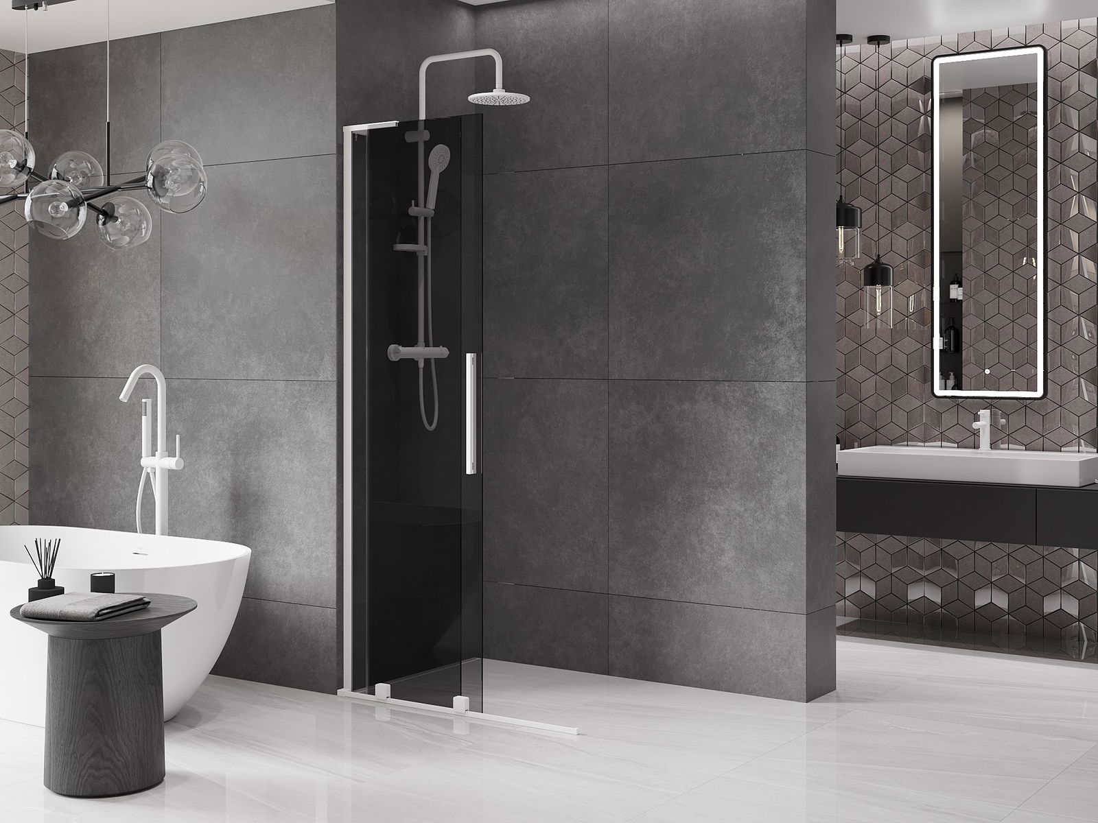 Mexen Velar L Drsna pršna stena Walk-in 90 x 200 cm, grafit 8 mm, bela - 871-090-003-43-20