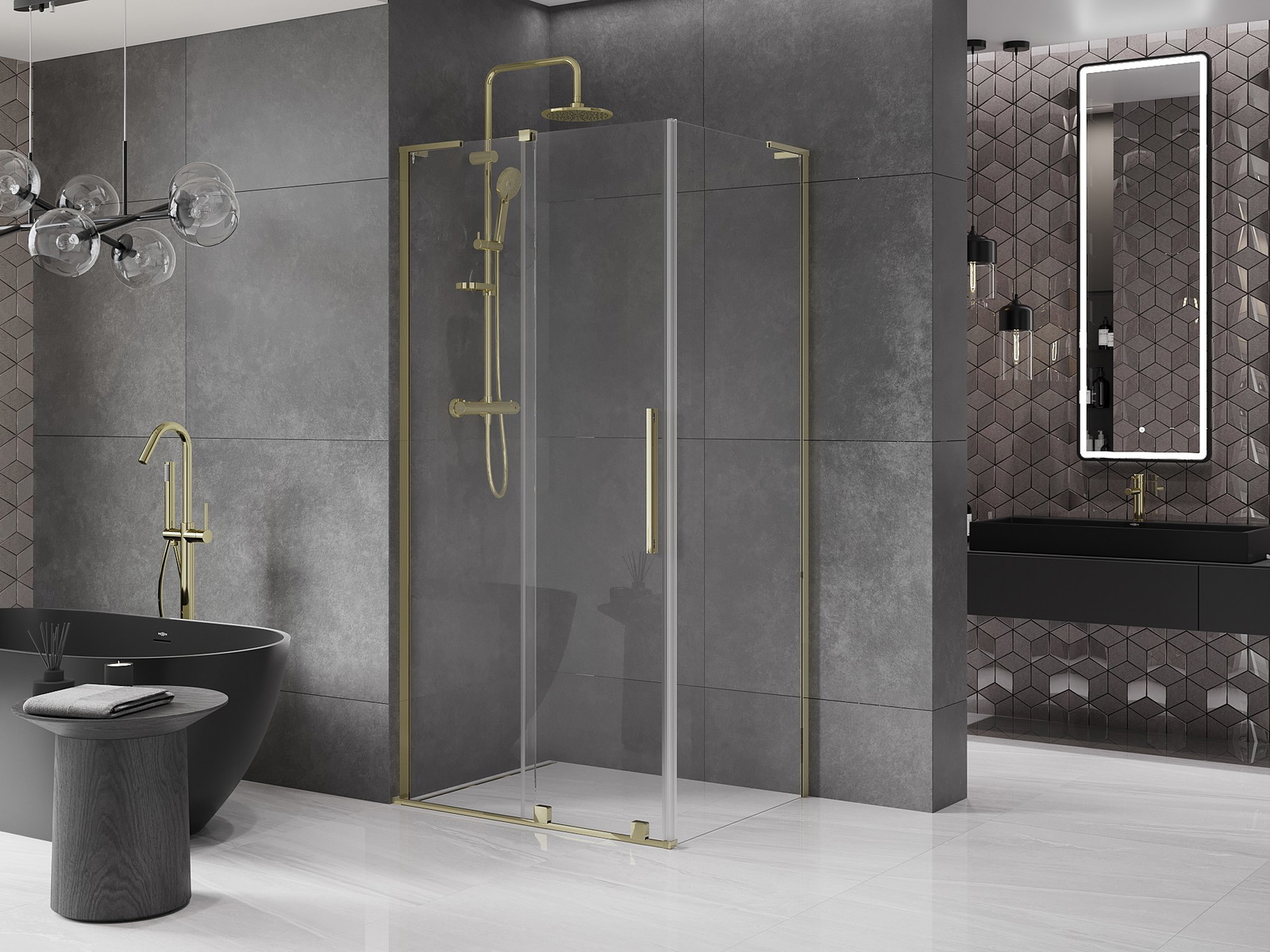 Mexen Velar L drsna tuš kabina je odlična izbira za tiste, ki cenijo eleganco in funkcionalnost. Njena univerzalna montaža ter regulacija širine omogočata, da se prilega vsaki kopalnici. Izdelava iz kaljenega stekla debeline 8 mm in prozorne barve zagotavlja trajnost in sodoben videz. Zlata obdelava dodaja pridih luksuza. Kotni stabilizator L in ročaj iz nerjavečega jekla zagotavljata trdnost, premaz, ki olajša čiščenje, ter komplet tesnil za odvajanje vode pa zagotavljata udobje pri uporabi. Možnost montaže na kad ali ploščice in izravnava neravnin stene predstavljata dodatne prednosti.