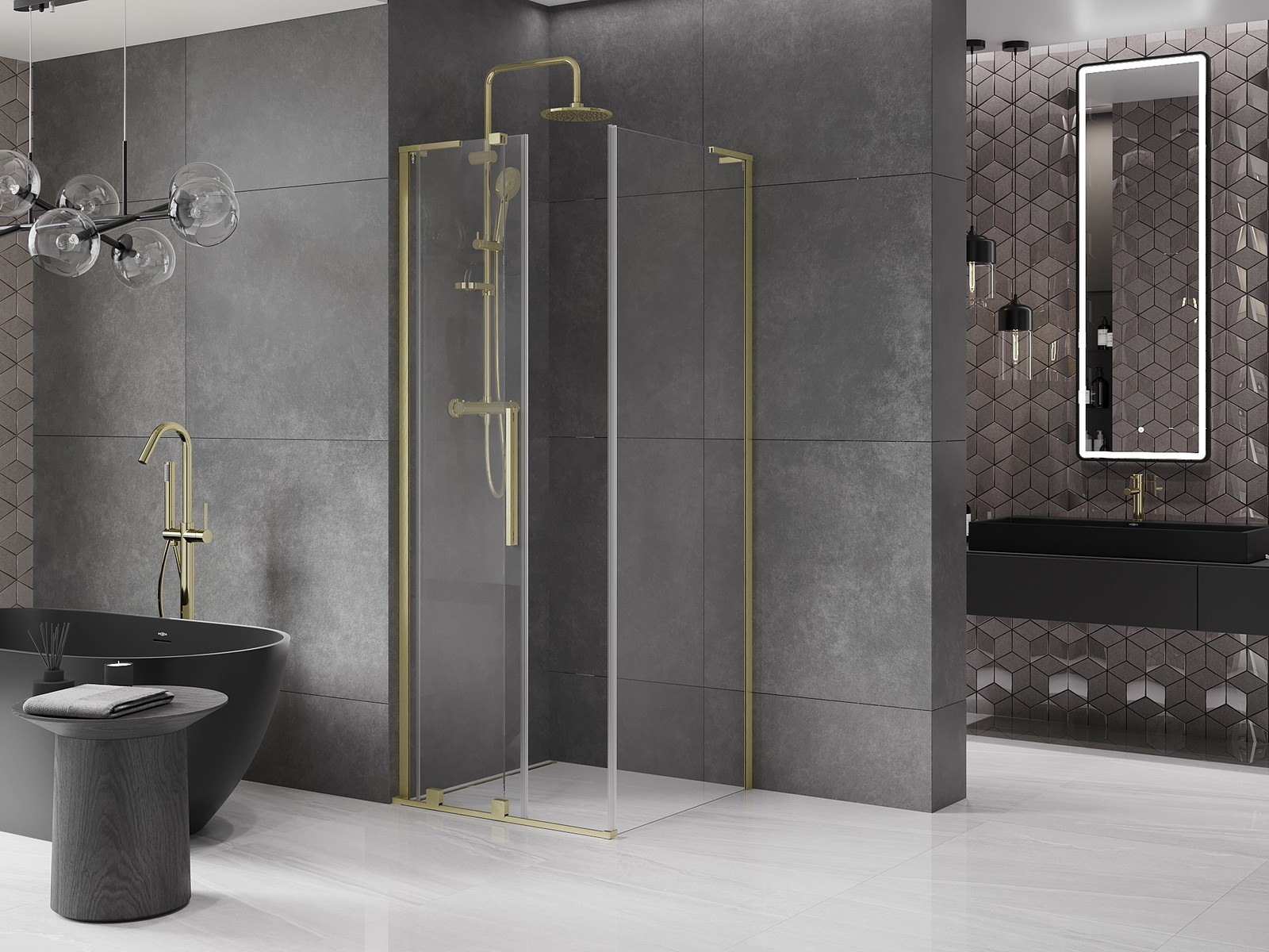 Pršna kabina Mexen Velar L je odlična izbira za moderne kopalnice, ki združuje eleganco in funkcionalnost. Z velikostjo 90x90 cm in višino 200 cm se kabina z lahkoto prilega različnim prostorom. Univerzalna montaža in drsna vrata zagotavljata udobje in prihranek prostora. Prozorno, kaljeno steklo debeline 8 mm s premazom za lažje čiščenje zagotavlja trajnost in enostavno vzdrževanje. Zlato brušena obdelava in aluminijast profil dodajata stil. Regulacija širine, izravnava neenakosti stene ter možnost montaže na kad ali ploščice naredijo ta izdelek izjemno vsestranski.