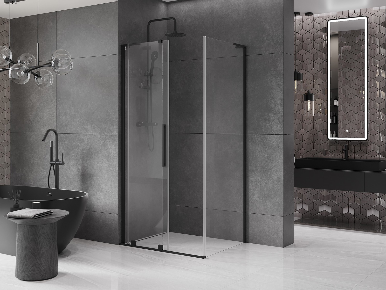 Zahvaljujoč uporabi univerzalnega sistema montaže je mogoče pršne vrata namestiti na desni ali levi strani, odvisno od potreb. Zahvaljujoč temu lahko z lahkoto oblikujete prho, prilagojeno prostoru v kopalnici.