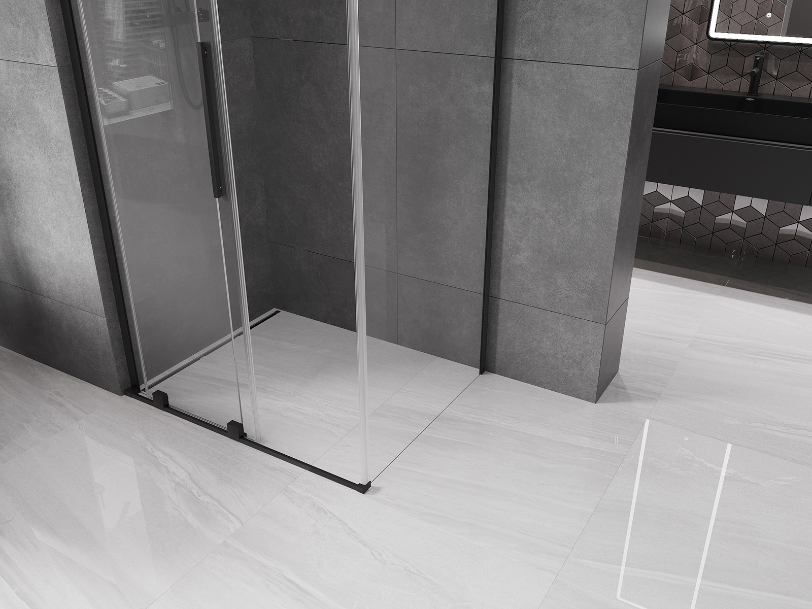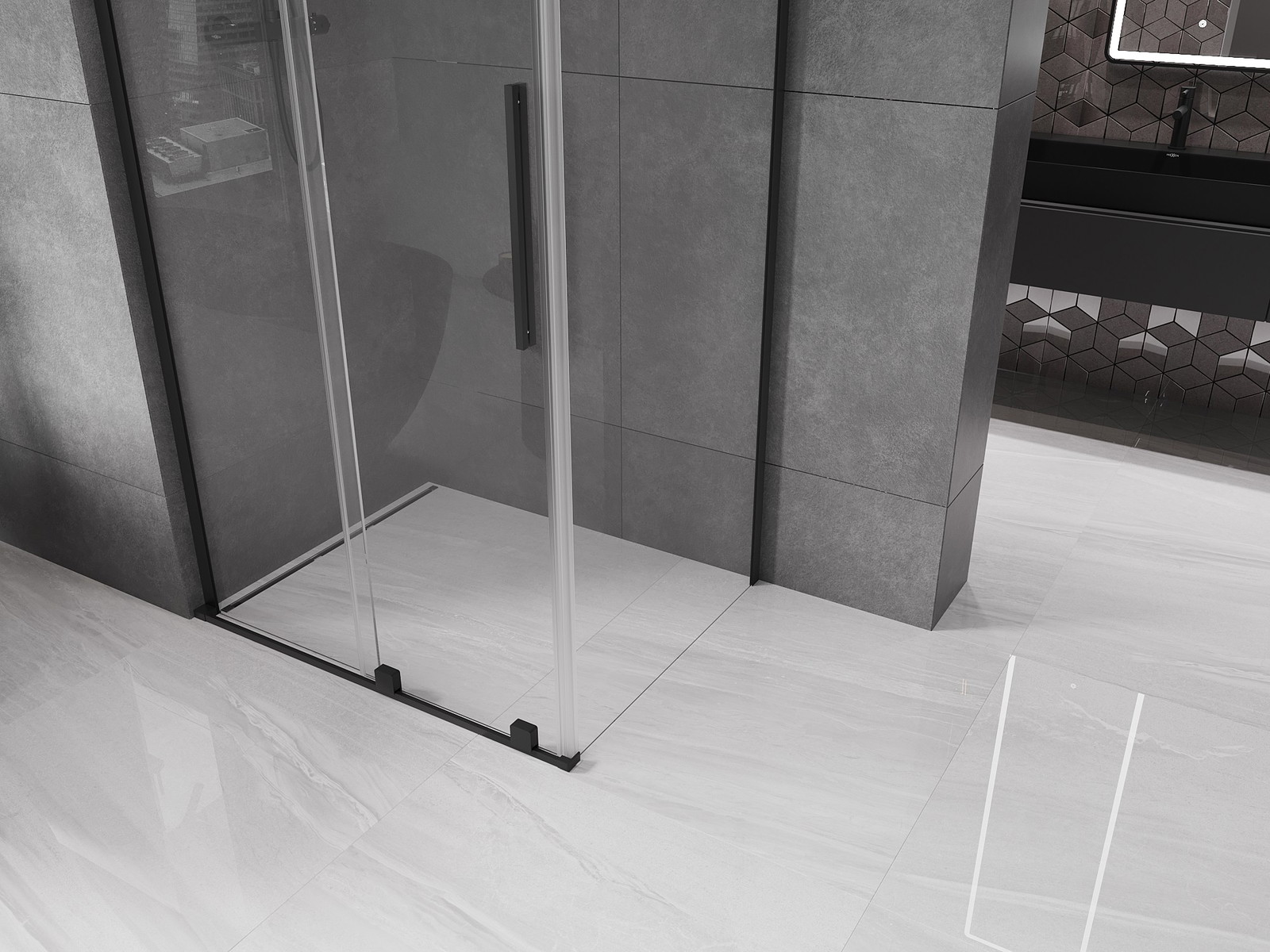 Mexen Velar L drsna tuš kabina 120 x 85 cm, prozorna, črna - 871-120-085-03-70
