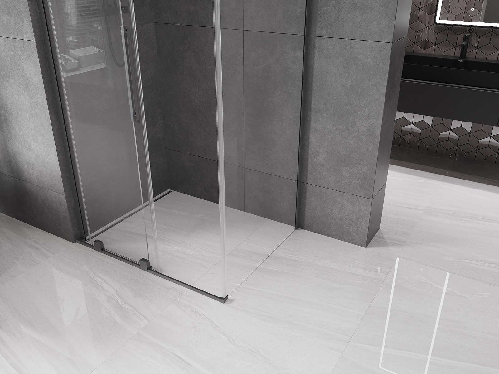 Mexen Velar L drsna pršna kabina 110 x 75 cm, prozorna, gun metal - 871-110-075-03-95