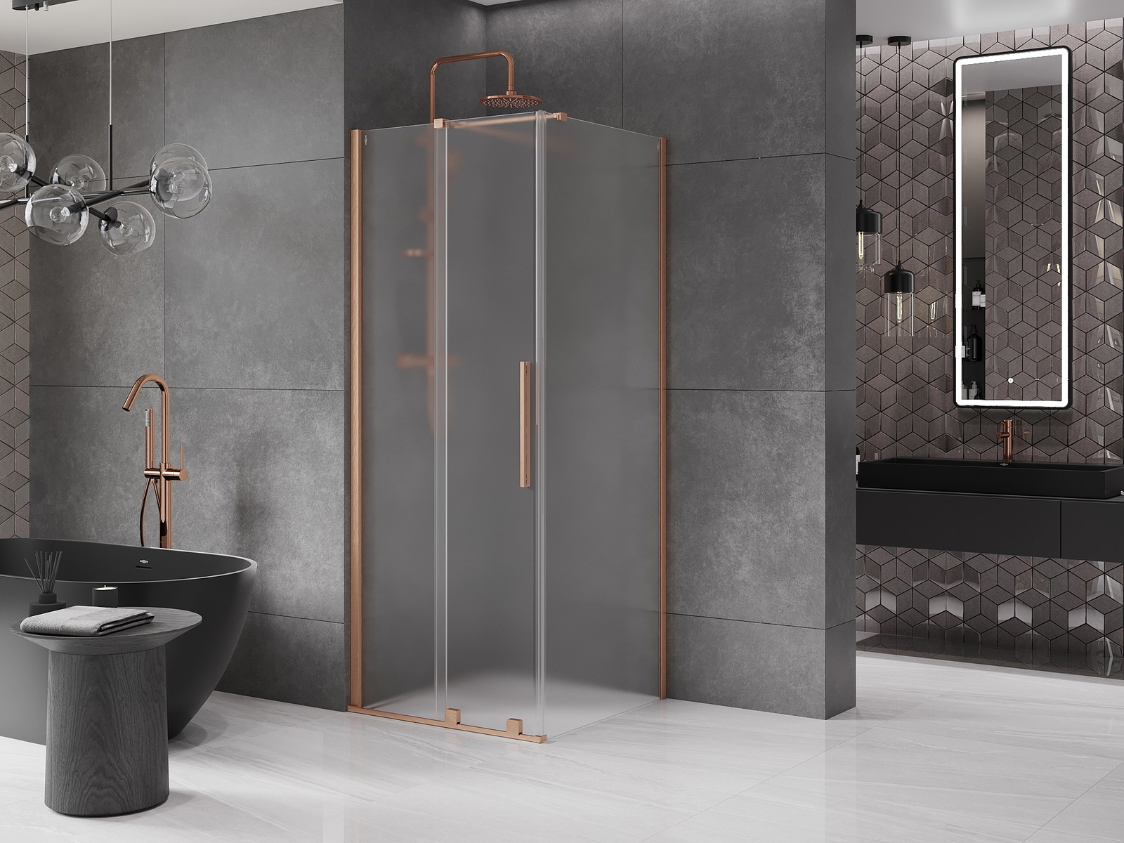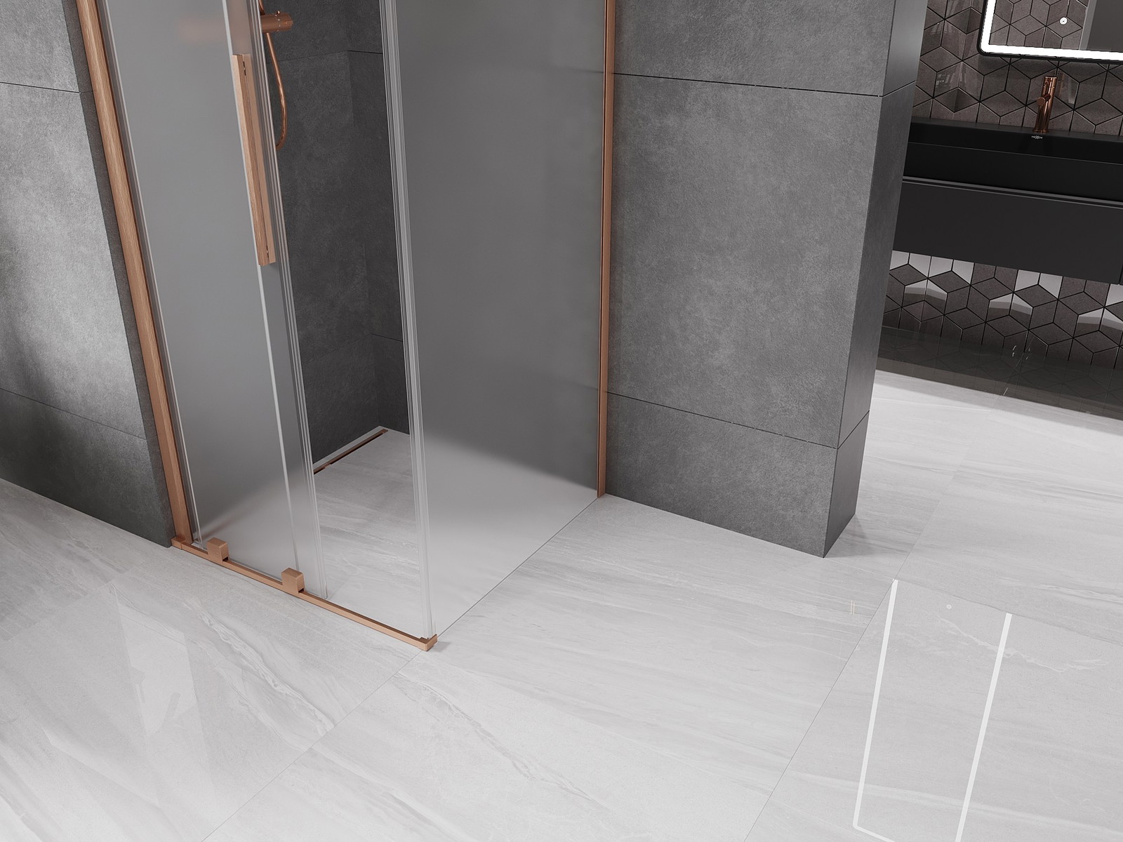 Mexen Velar drsna tuš kabina 120 x 120 cm, mraz, brušen baker - 871-120-120-31-65