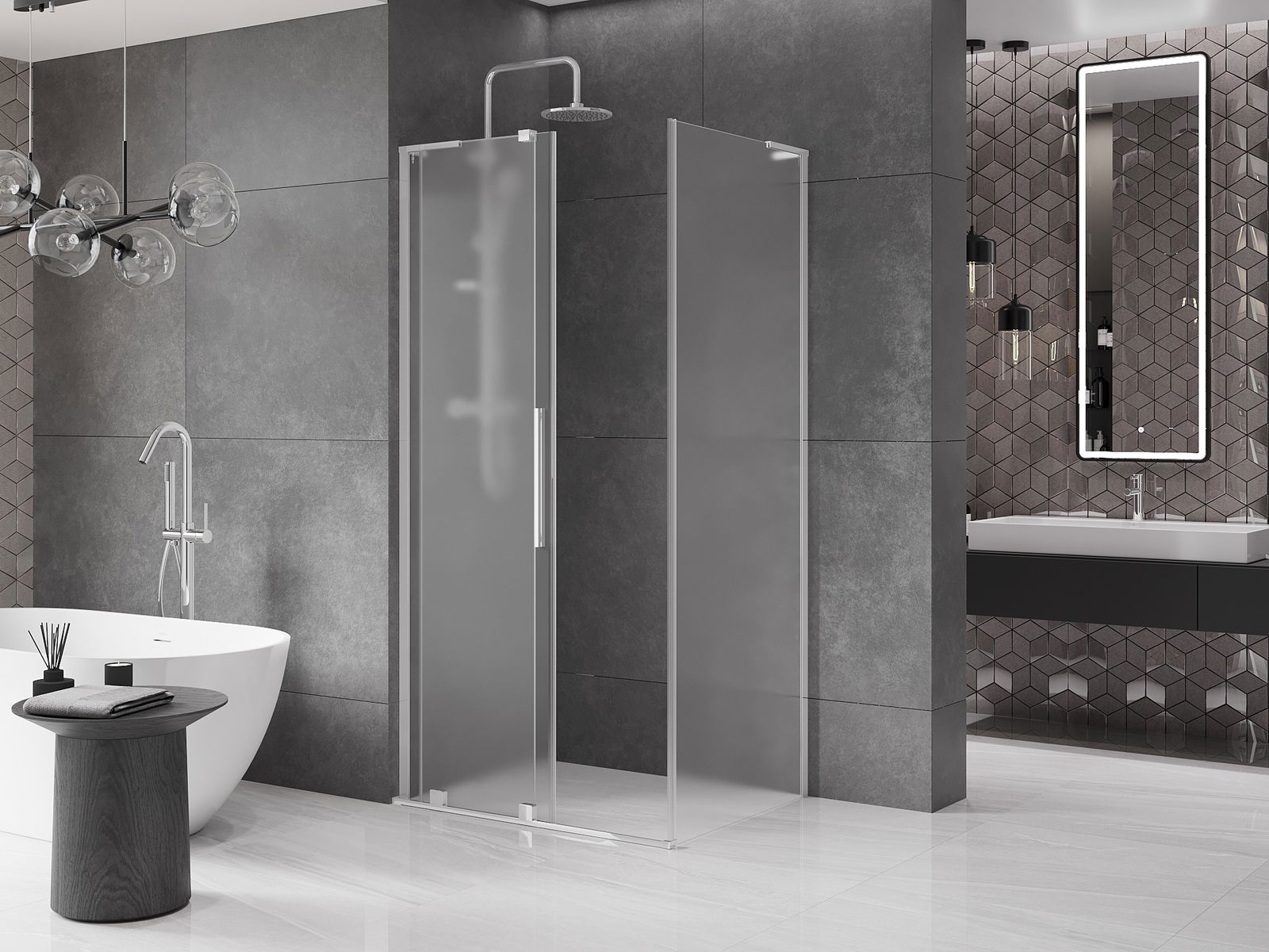 Zahvaljujoč uporabi univerzalnega sistema montaže je mogoče pršne vrata namestiti na desni ali levi strani, odvisno od potreb. Zahvaljujoč temu lahko z lahkoto oblikujete prho, prilagojeno prostoru v kopalnici.