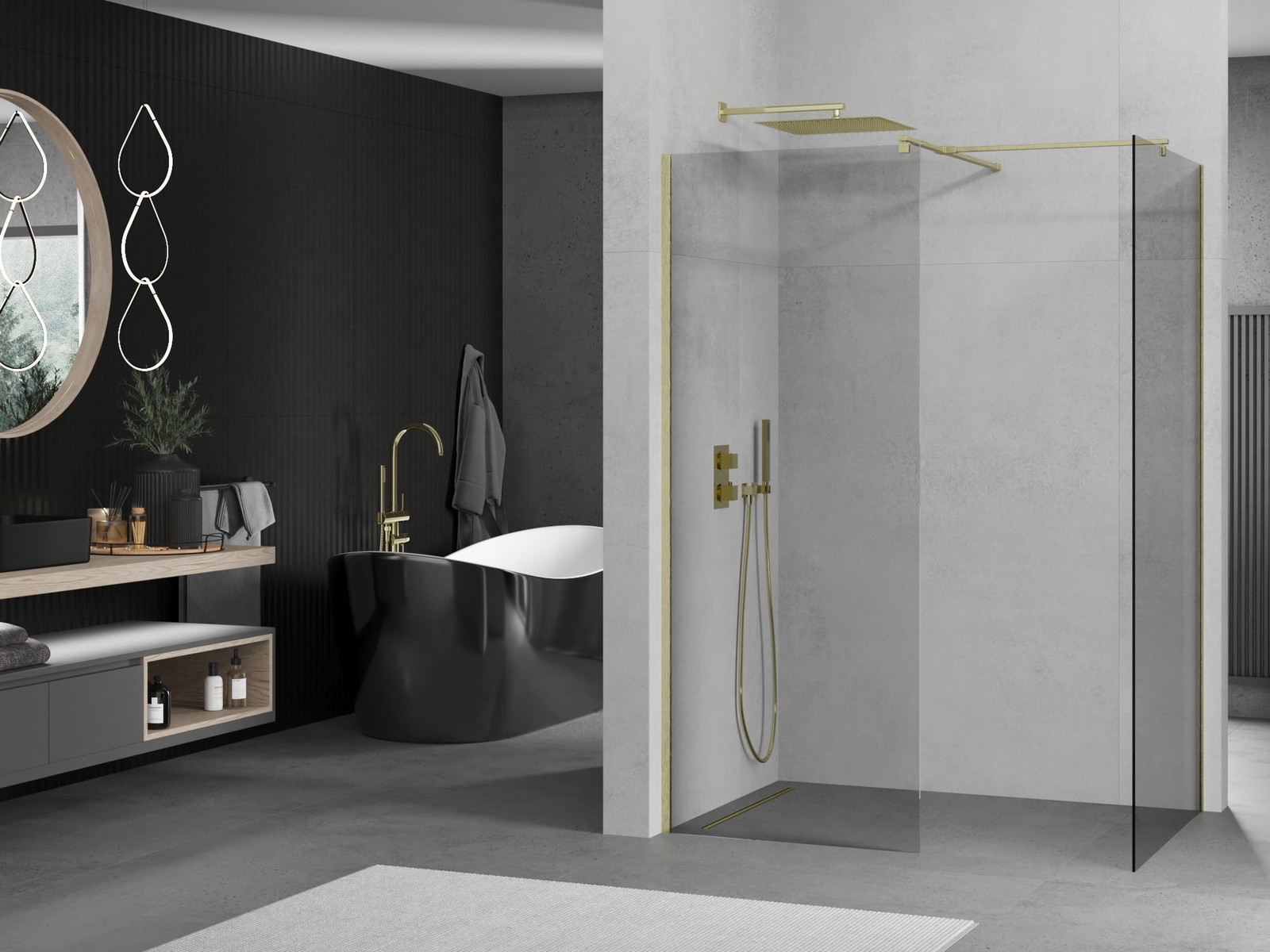 Mexen Kioto tuš stena Walk-in 170 x 120 cm, prozorna, zlata matirana - 800-170-202-55-00-120