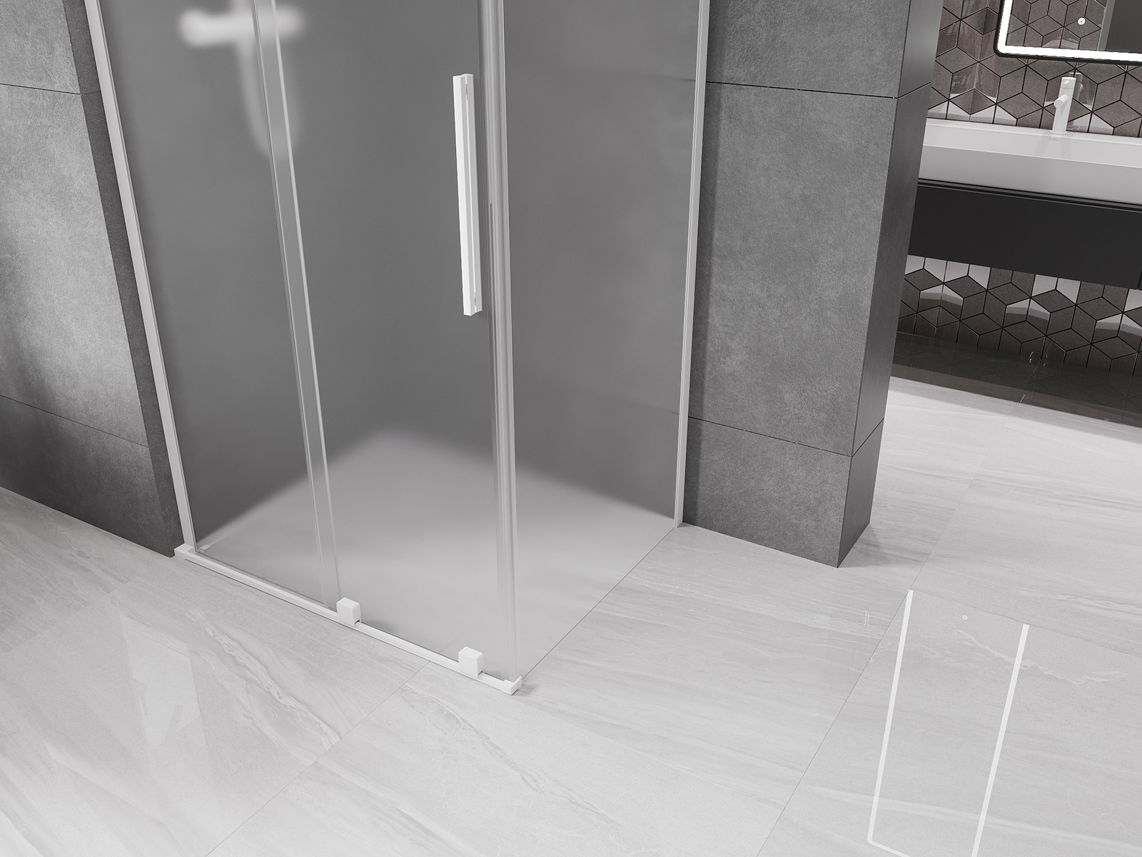 Mexen Velar L drsna tuš kabina 90 x 75 cm, mraz, bela - 871-090-075-33-20