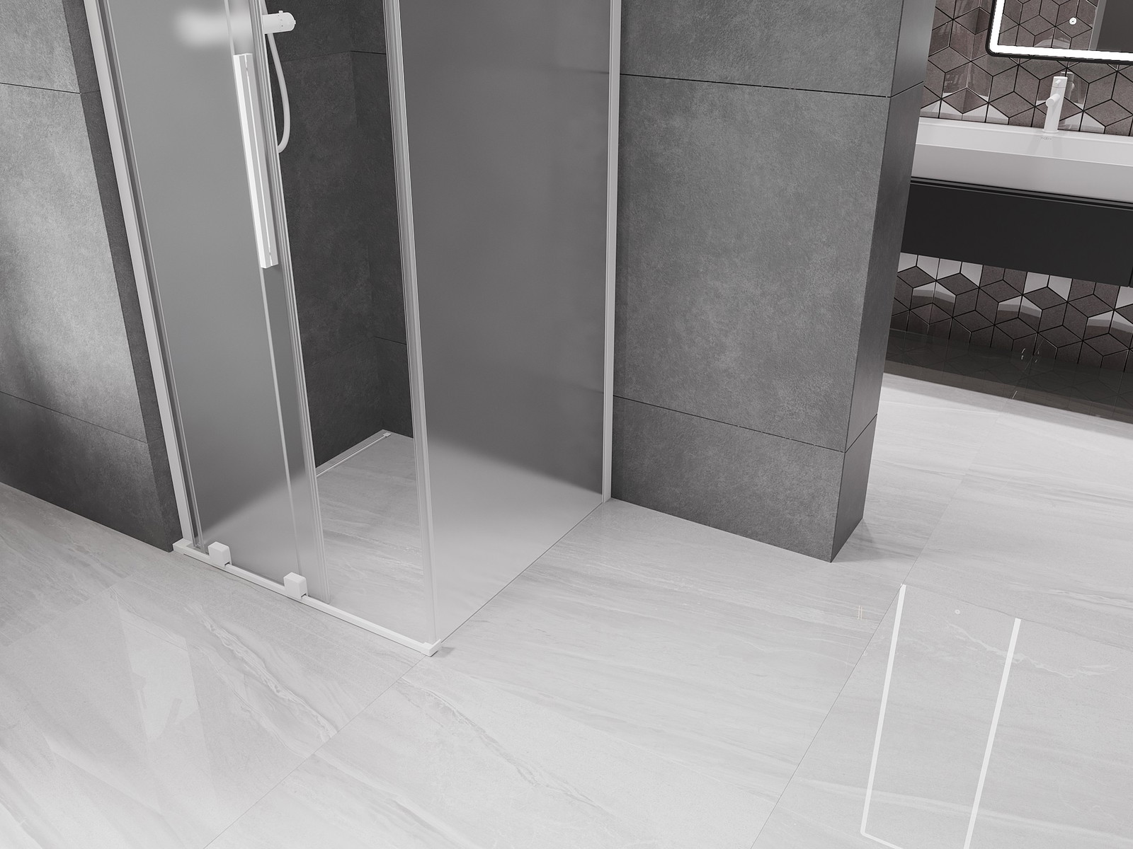 Mexen Velar L razsuvna tuš kabina 90 x 90 cm, matirano steklo, bela - 871-090-090-33-20