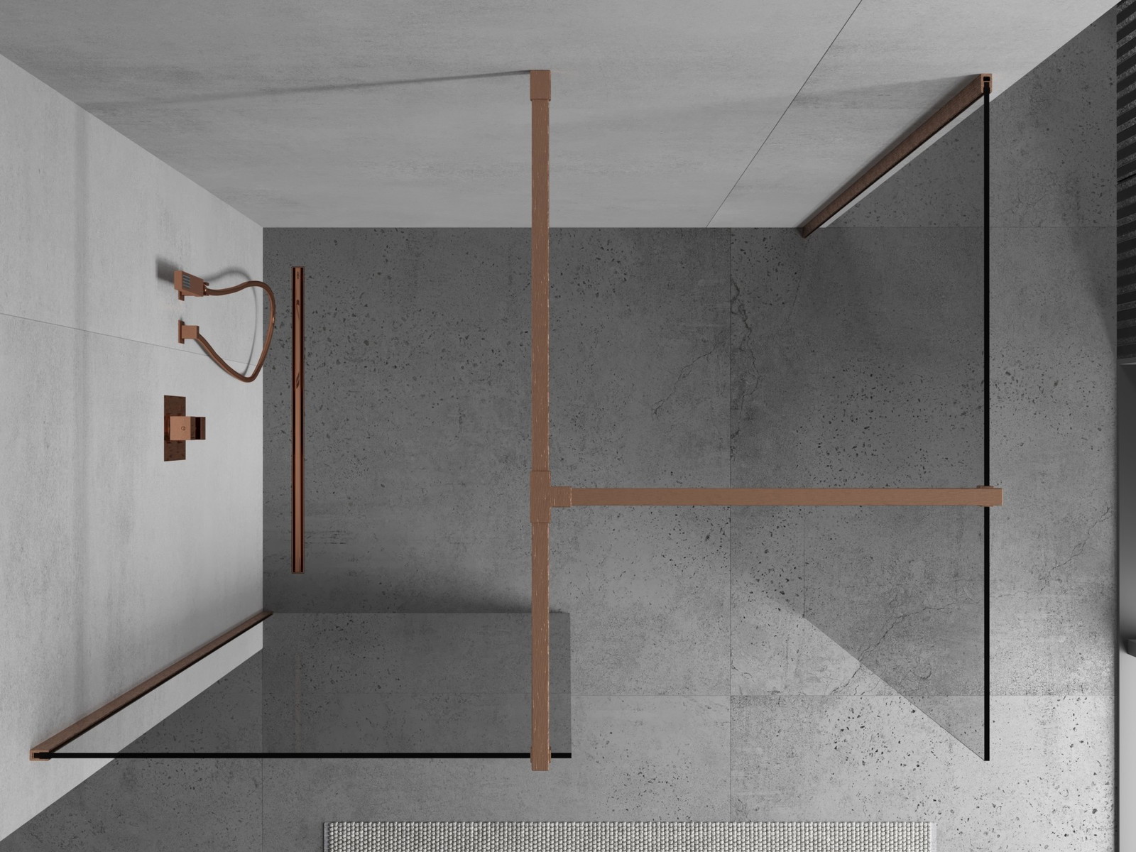 Mexen Kioto tuš stena Walk-in 130 x 70 cm, prozorna, brušena medenina - 800-130-202-65-00-070