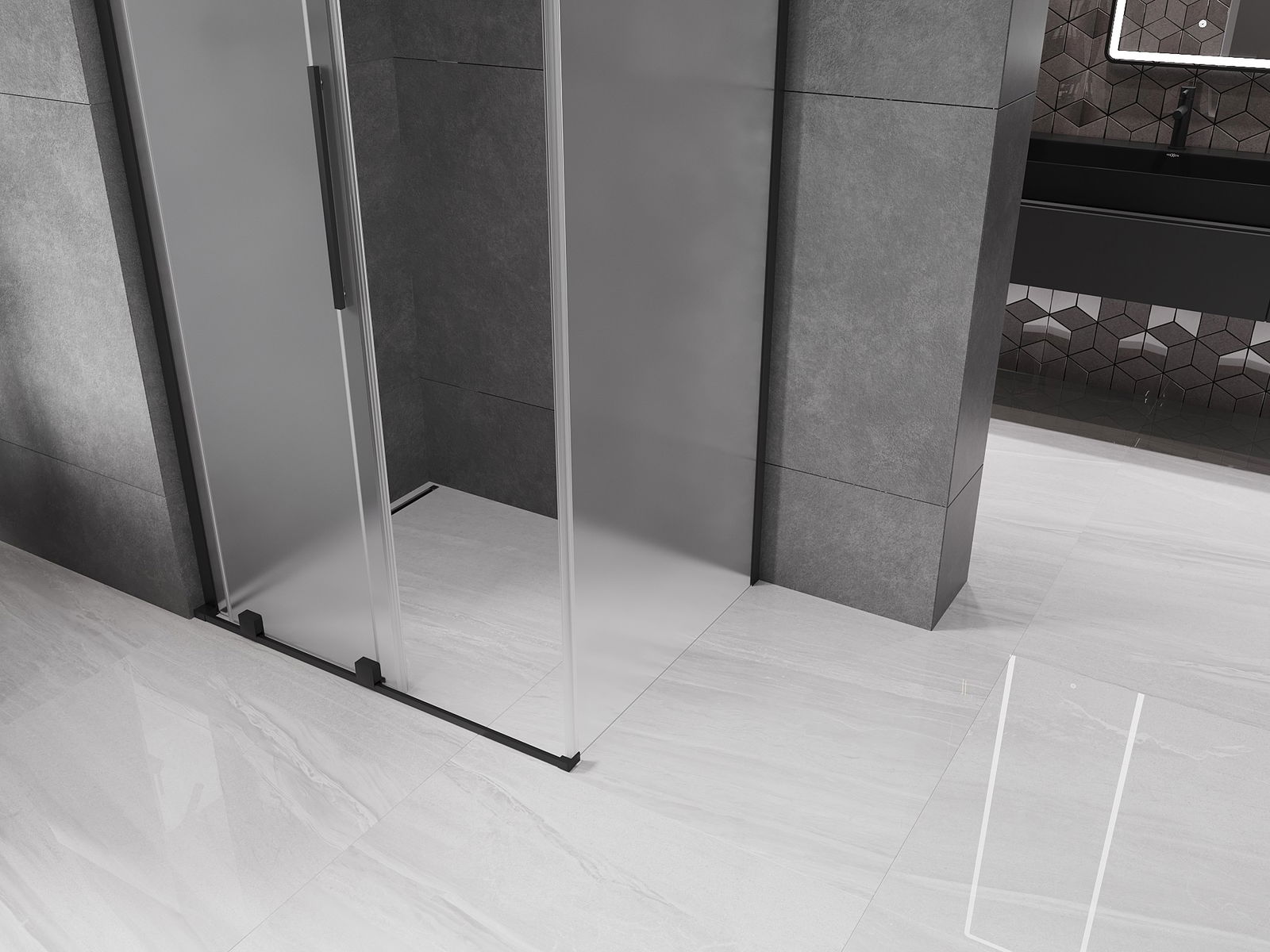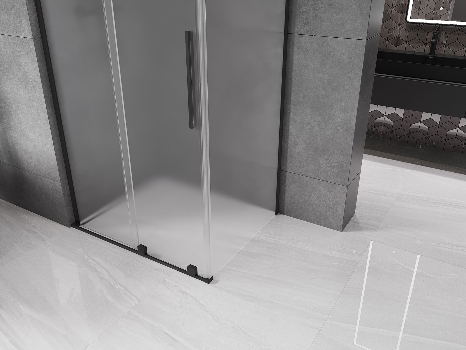 Mexen Velar L drsna pršna kabina 100 x 90 cm, mraz, črna - 871-100-090-33-70