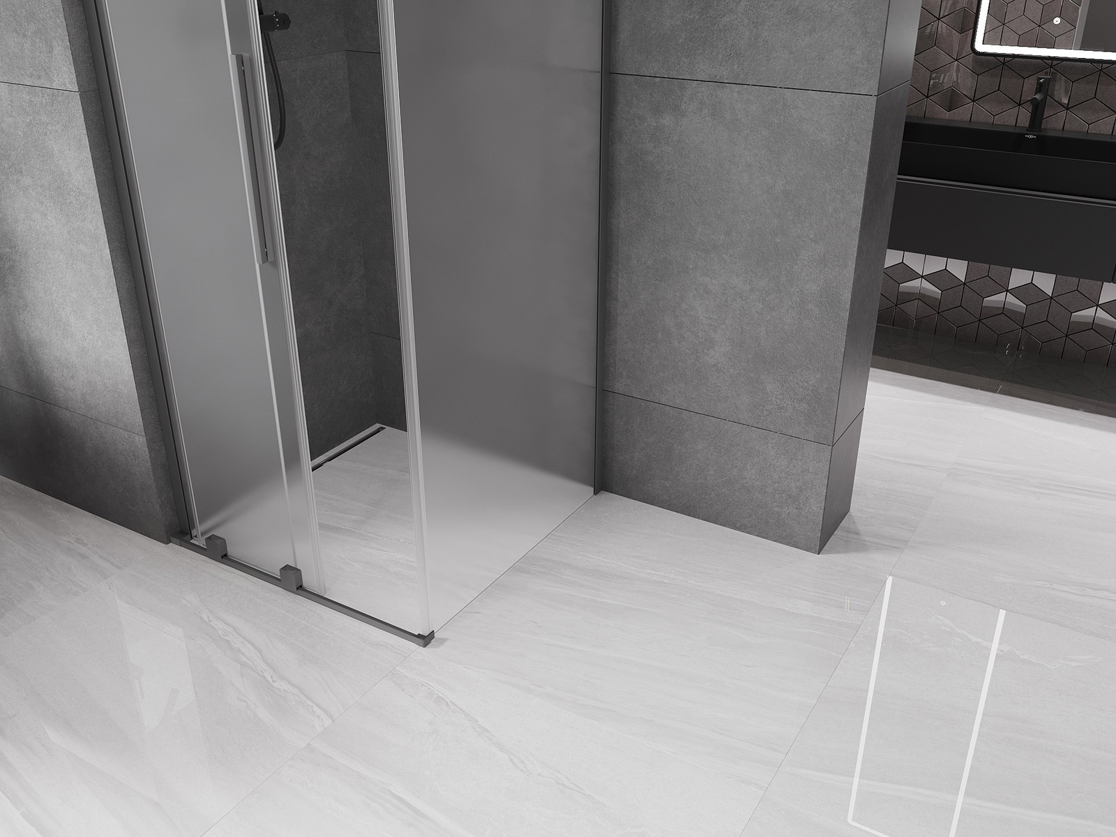 Mexen Velar L drsna tuš kabina 90 x 90 cm, mraz, pištola kovina - 871-090-090-33-95