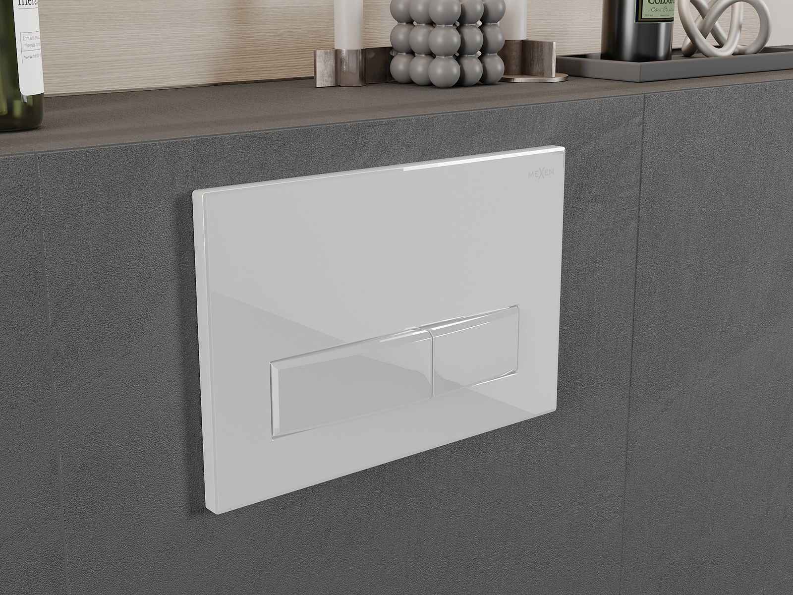Gumb je namenjen za nadometne okvirje, kjer je mesto montaže na sprednji strani konstrukcije. Takšna postavitev omogoča enostaven dostop in udobno upravljanje splakovanja.